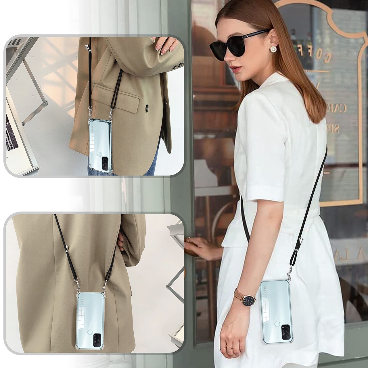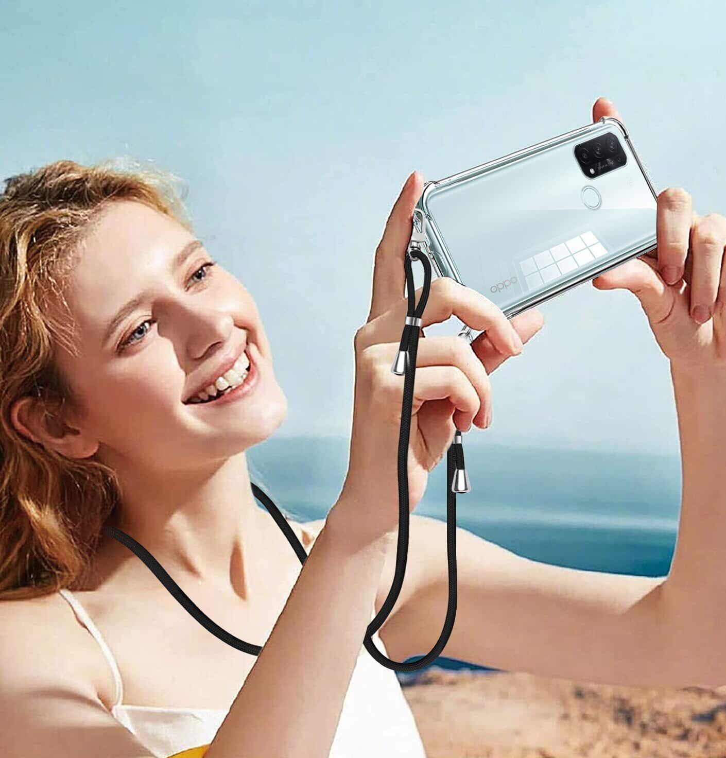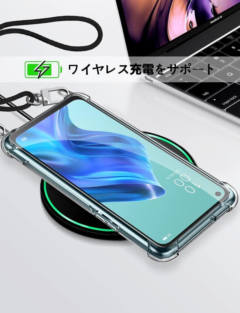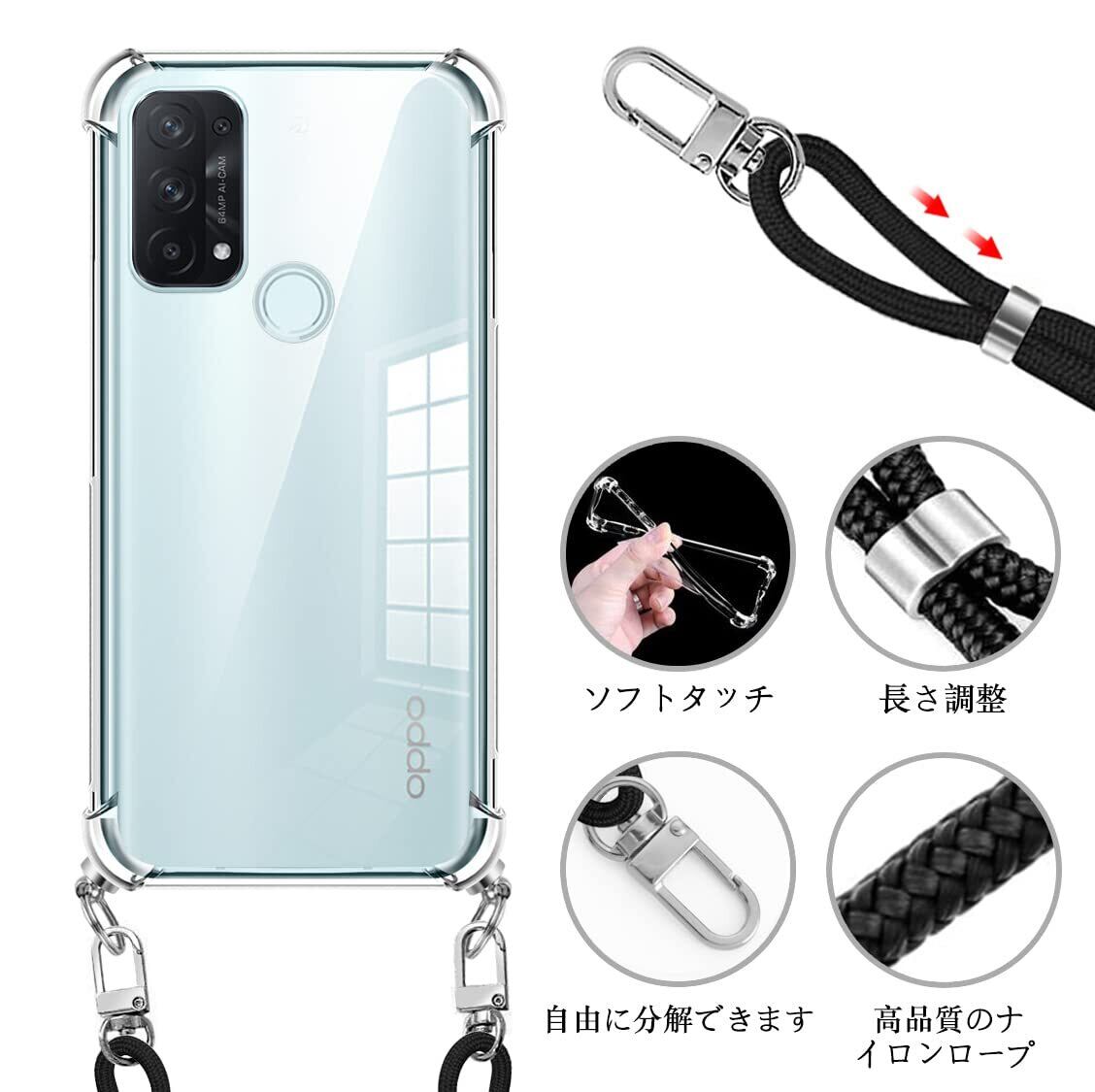 OPPO Reno5 A ケース クリア OPPO Reno5a スマホケース オッポ リノ5A 5G カバー ショルダー 肩掛け 斜めかけ 縄掛けケース 縄掛け 透明 TPU ストラップ付き 薄型軽量 長さ調整可能 取り外し可能 スマホ 首掛け ストラップ 落下防止 透明 縄掛け -ブラック