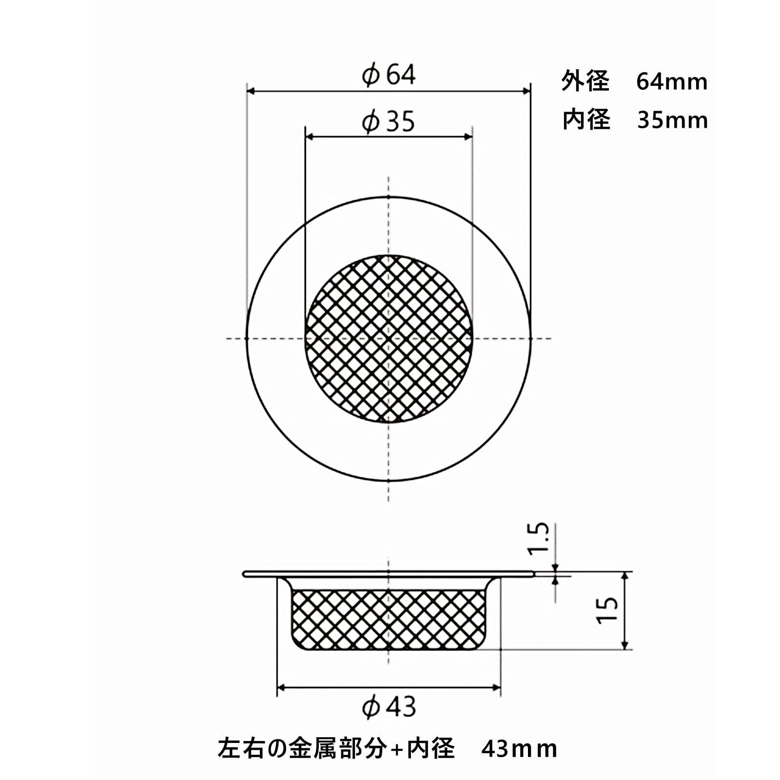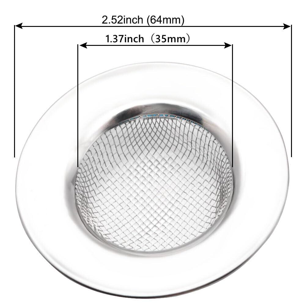 【洗面台排水口用のゴミ受け】排水口の穴43~58mmまで対応、内径3.5cm、外径6.4cm、網目約1.5mm。ご購入前に、洗面所排水口のサイズを確認してください。底部に金属が浮き上がっている部分があるので、3.5cm以内の排水口に嵌入すると、わずかに浮き上がる可能性があります