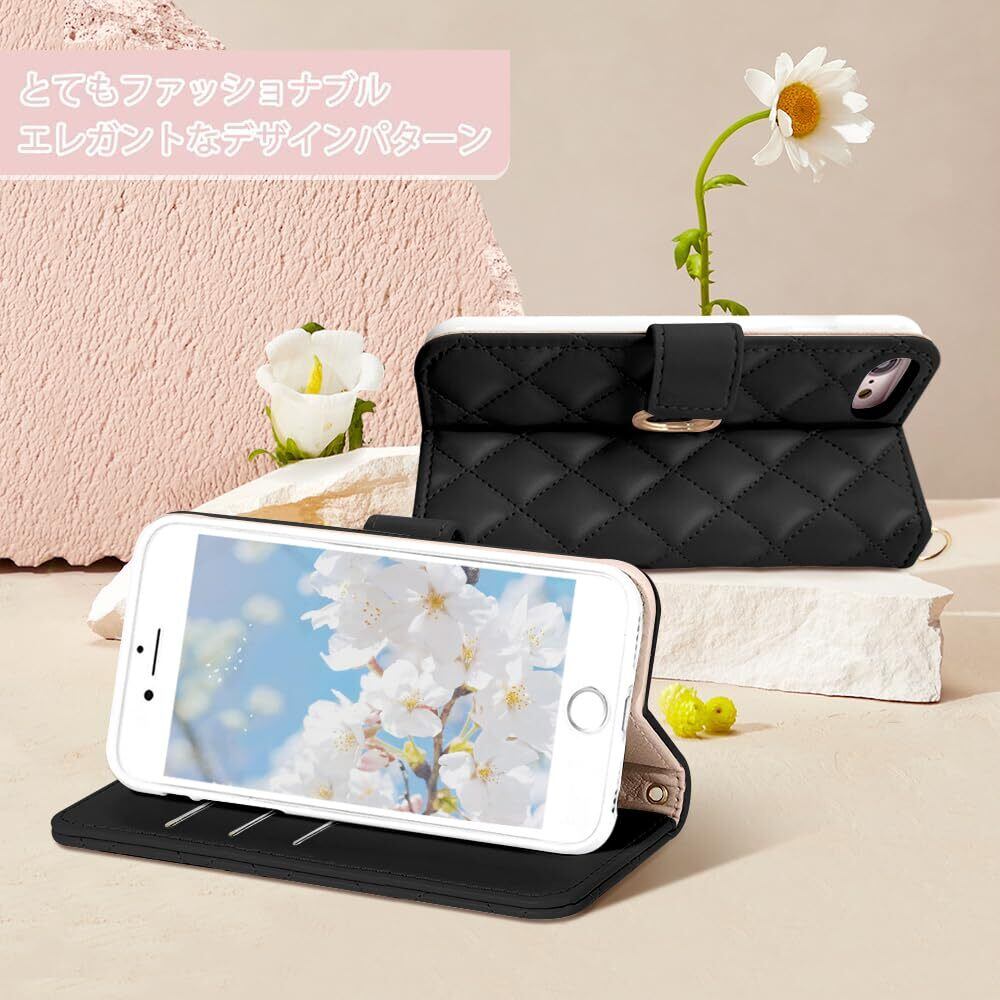 MAGICASE FOR iphoneSE 2020 ケース 手帳型 チェック柄 刺繍 かわいい iPhone SE3 第三世代 ケース iphone8 ケース 手帳型 おしゃれ 人気 カード収納 アイフォンSE3 財布型 アイホンSE2ケース 手帳型 肌触り良い 軽量 落ち着いた色 高級PUレザー あいほん6S ケース 気質 美しい 実用 贈り物 全面保護 (4.7inch対応) ブラック