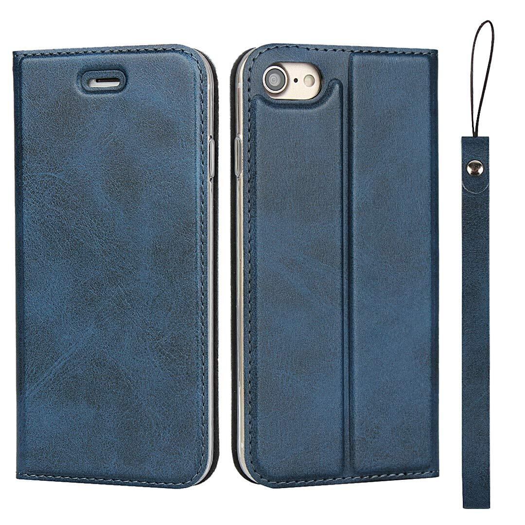 Pelanty for iPhone SE 2022 第3世代/ SE 2020 第2世代 手帳型ケース for iPhone 7/ 8 携帯カバー PUレザー カード収納 スタンド機能 衝撃吸収 ストラップ付き マグネット式 アイフォンse2/se3/8/7 スマホケース 全面保護カバー 軽量薄型 耐衝撃 ブルー