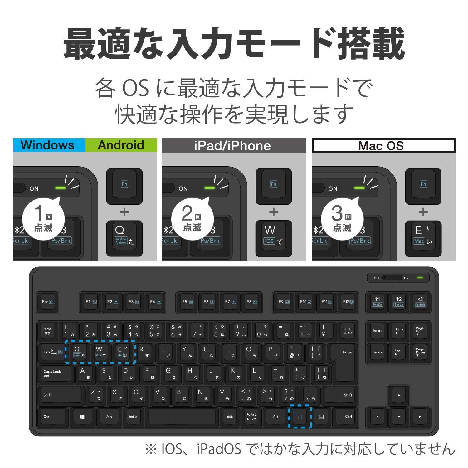エレコム Bluetooth キーボード メンブレン式 スタンド付き マルチペアリング対応 iPad Surface ブラック TK-FBM111BK