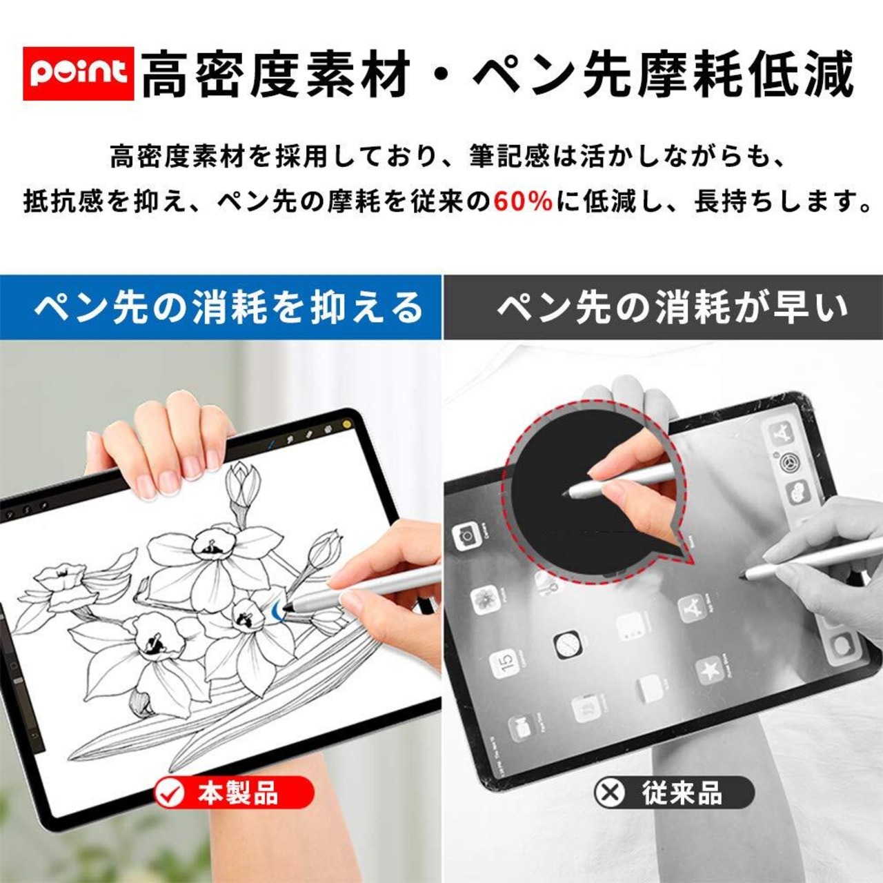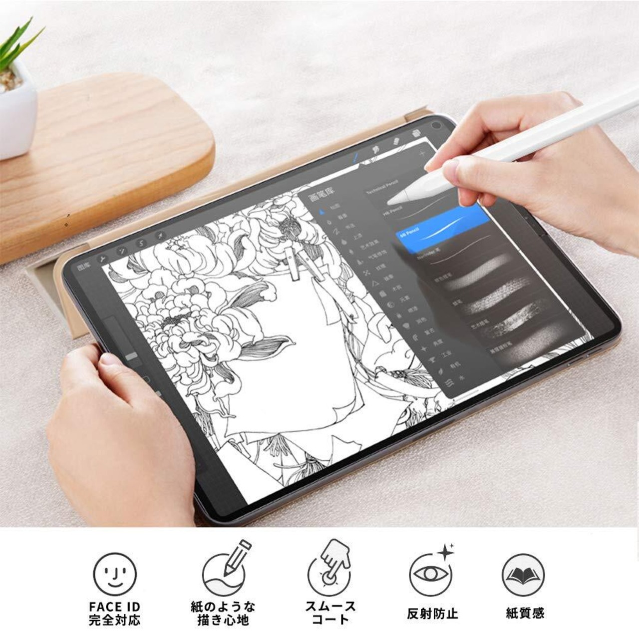 【上質紙タイプ】しっかりとした描き心地を実現し、ペン先が滑りすぎないため線画が描きやすいフィルムです。