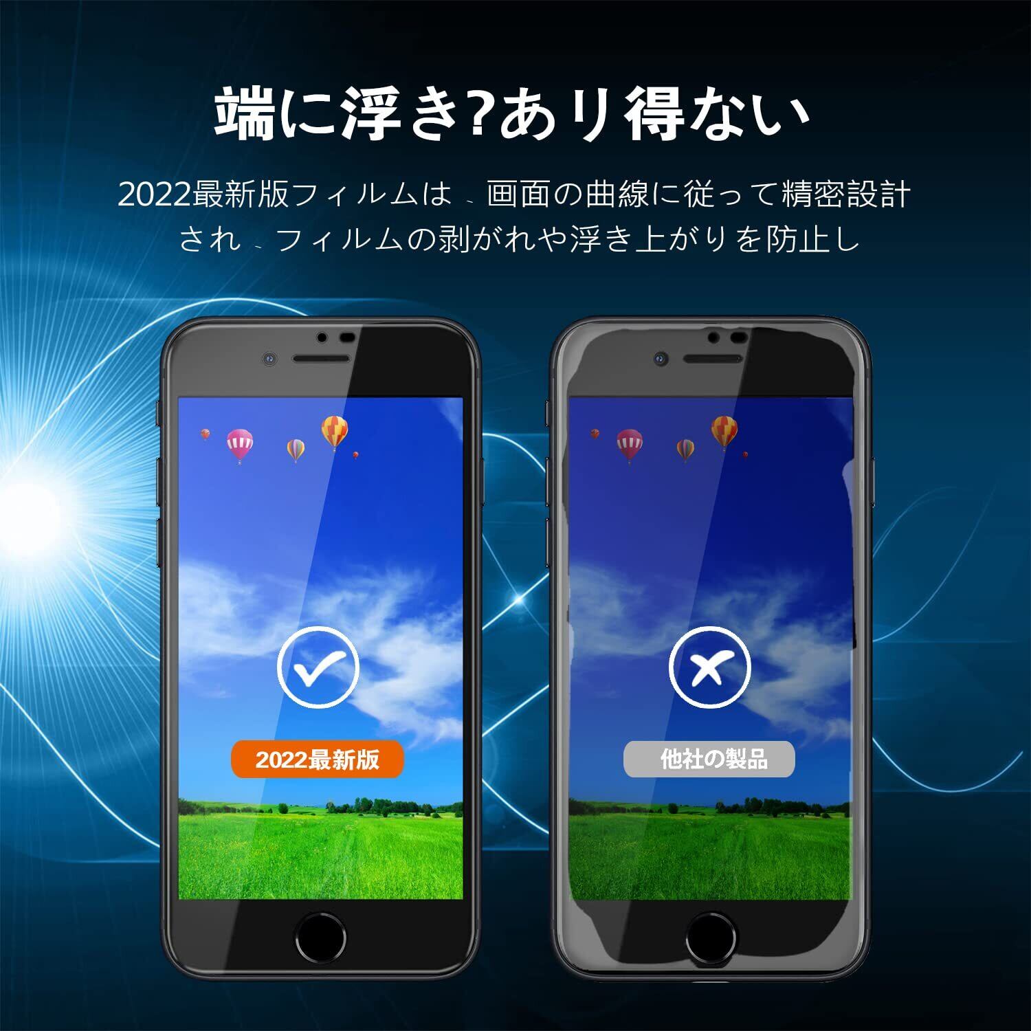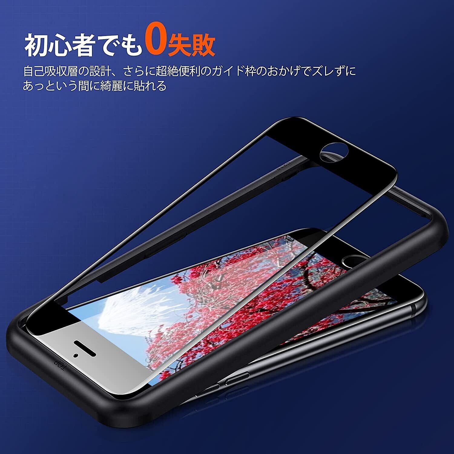 【対応機種】iPhone SE第3世代 / SE第2世代 / 7 / 8(アイフォン SE3/SE2/8/7)4.7インチ用。初めての方でも簡単に貼り付けられるよう、ガイド枠付き。機種の選択には間違いがないよう、ご注文前によくお確かめください。