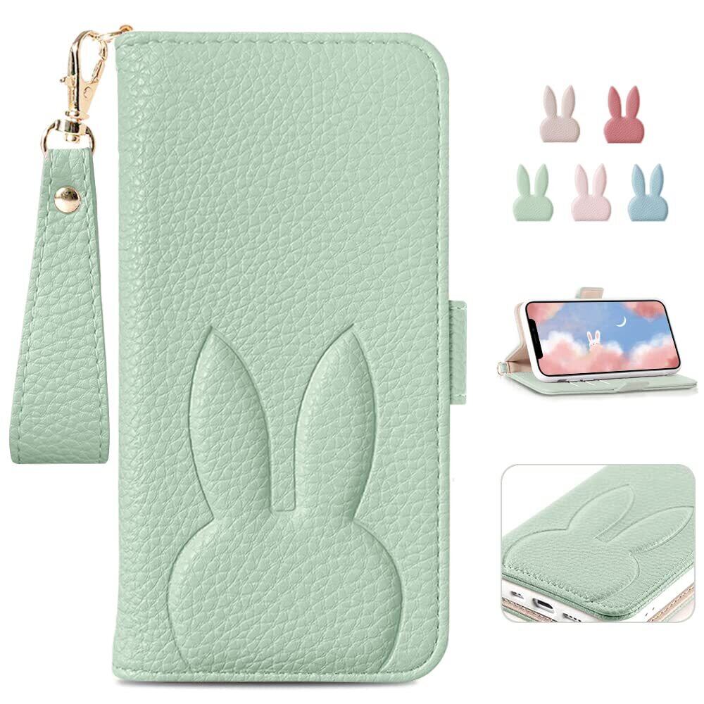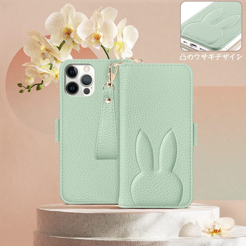 For iPhone12 ケース 手帳型 アイフォン12 スマホケース iphone12Pro 手帳カバー アイフォン12 保護ケース おしゃれ人気 アイホン12 シンプルお カードポケット 電話ケース 可愛 財布型 どうぶつ 兎柄 レディース 女性 ストラップ 美しい アイホン12 手帳型 うさぎ かわいい 携帯ケース 動物 肌触り良い 落ち着いた色 ストラップ付き 折り畳み式 贈り物グリーン
