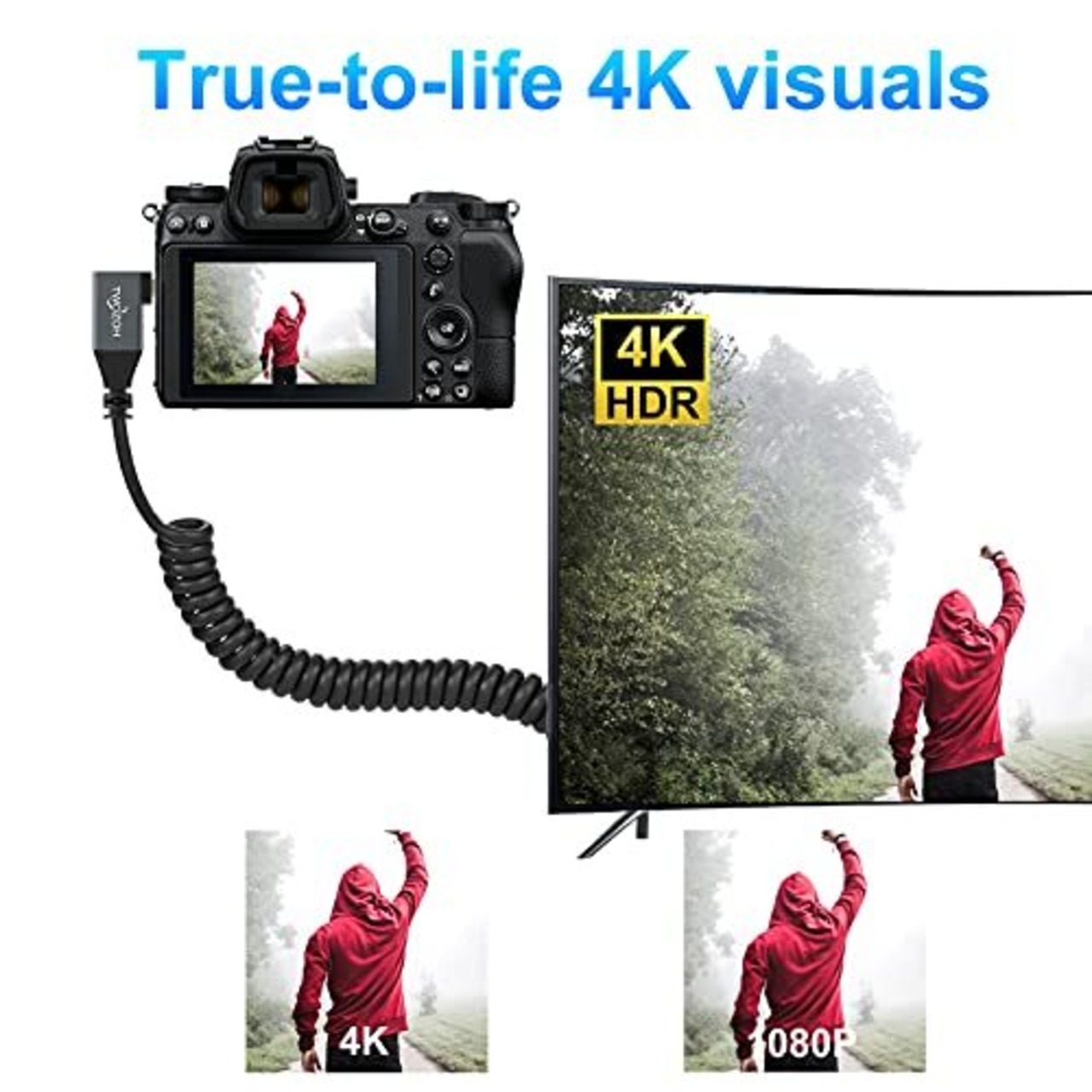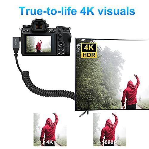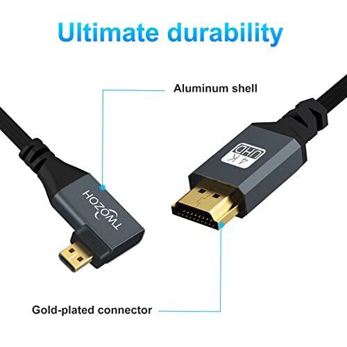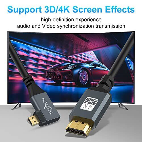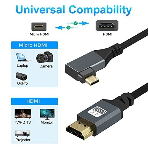 Twozoh Micro HDMI to HDMIケーブル HDMIタイプAオス-Micro HDMIタイプD(Micro)オス 90° (右L型) 4K/60Hz,1080p 伸縮調節可能(150cm延長対応)