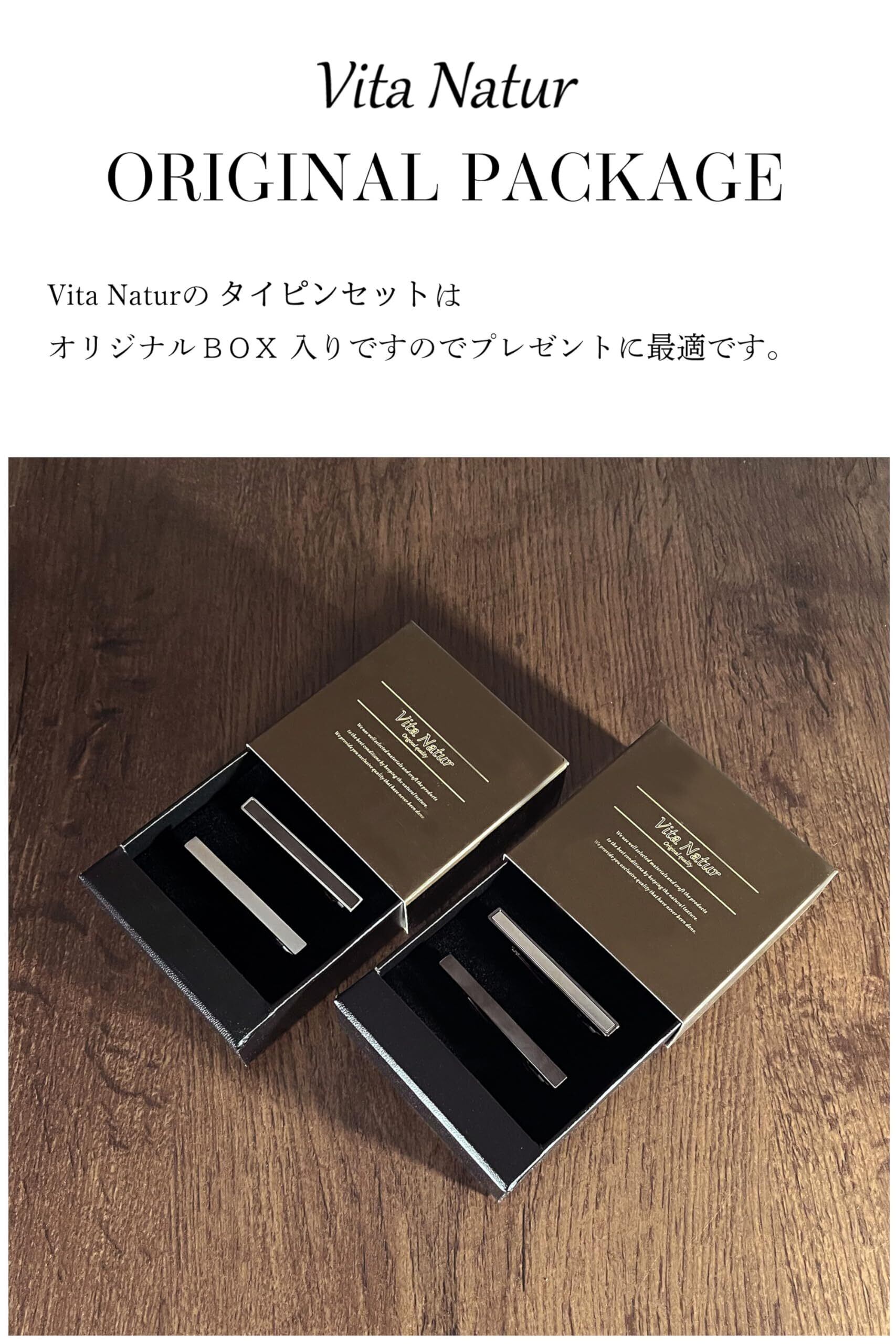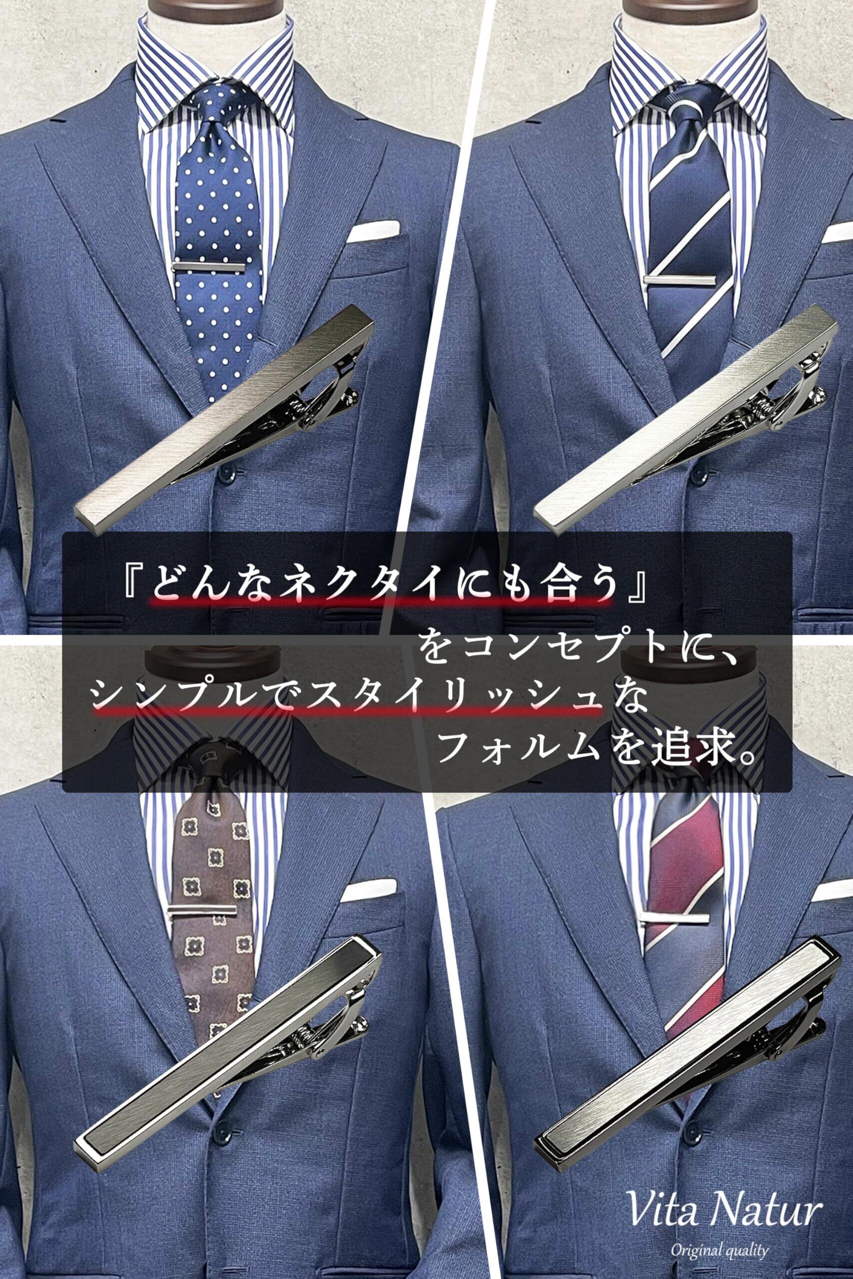 [ Vita Natur ] ヴィタ・ナトゥール ネクタイピン タイピン おしゃれ ブランド 【どんなネクタイにも合う真鍮製2本セット】 誕生日や父の日のプレゼントにも ビジネス スーツ 結婚式 喪服 礼服 冠婚葬祭 入学式 卒業式 二次会 パーティー [Vita Natur](ソリッドセット)