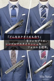 【ネクタイピンの仕様】【サイズ】約55mm×20mm×幅5mm 【重さ】10g 【型】ワニ口式 【素材】真鍮 【加工】ロジウムメッキ、ニッケルメッキ、サティーナ(つや消し/マット)加工 シンプルなものづくりにこだわる [Vita Natur] から、どんなメンズブランドネクタイにも合わせやすいネクタイピンをご提案いたします。