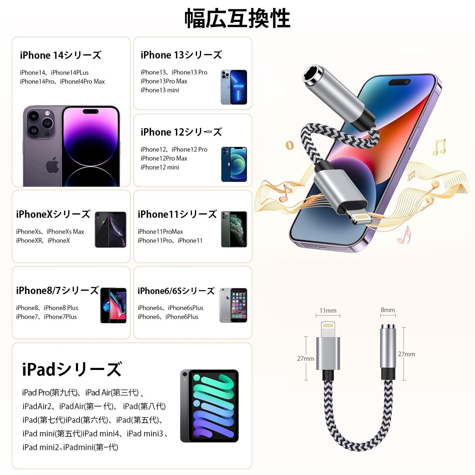 【対応機種】すべてのPhoneに対応します。Phone 14/14 plus/14 pro/14 pro Max/、Phone 13 Pro/Pro Max/13 mini/13、Phone 12 Pro/12 Pro Max/12 mini/12、Phone 11 Pro/11 Pro Max/11/SE (第二世代)、Phone XS/XS Max/XR/X、Phone 8 Plus/8/7 Plus/7などのiPhone機種、PadとPod機種デバイスに適用します。(ご注意:phone15シリーズに対応できない)
