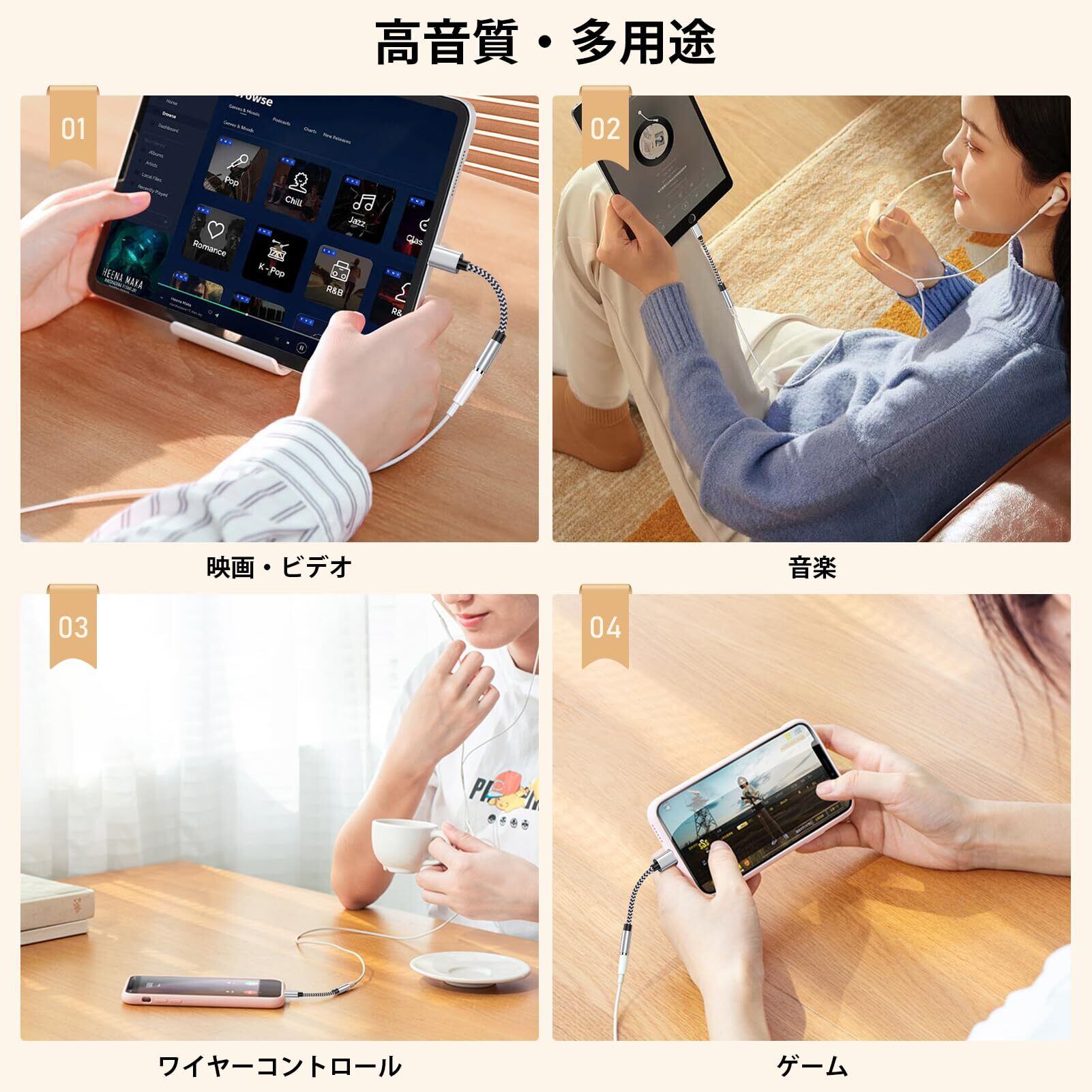 【多機能&使用简单】3.5mmヘッドフォンジャックは、インラインコントロールに対応により、PhoneやPadの画面に触れることなく、音楽の再生・停止やボリューム操作ができて便利です。