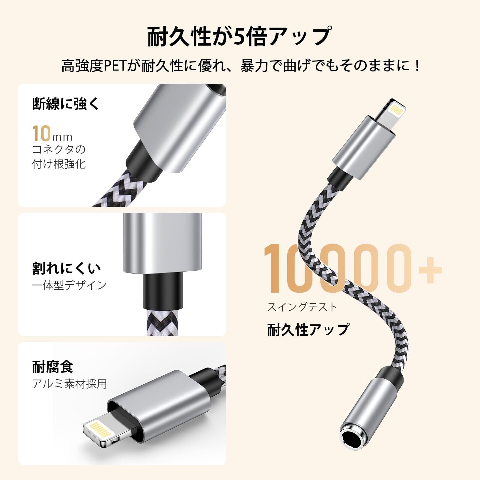 【高耐久性&高保護】アルミ合金と丈夫なナイロン編みを使用しており、20000回のテストに合格し、頑丈で耐久性にも優れています。メッシュの末端は高強度TPE素材で一体化されており、コネクタの劣化や断線を防ぎ、薄型を維持しながら耐屈曲性を向上させている。また、他の電線との絡みも少なく、ほつれを気にせず使用できる。