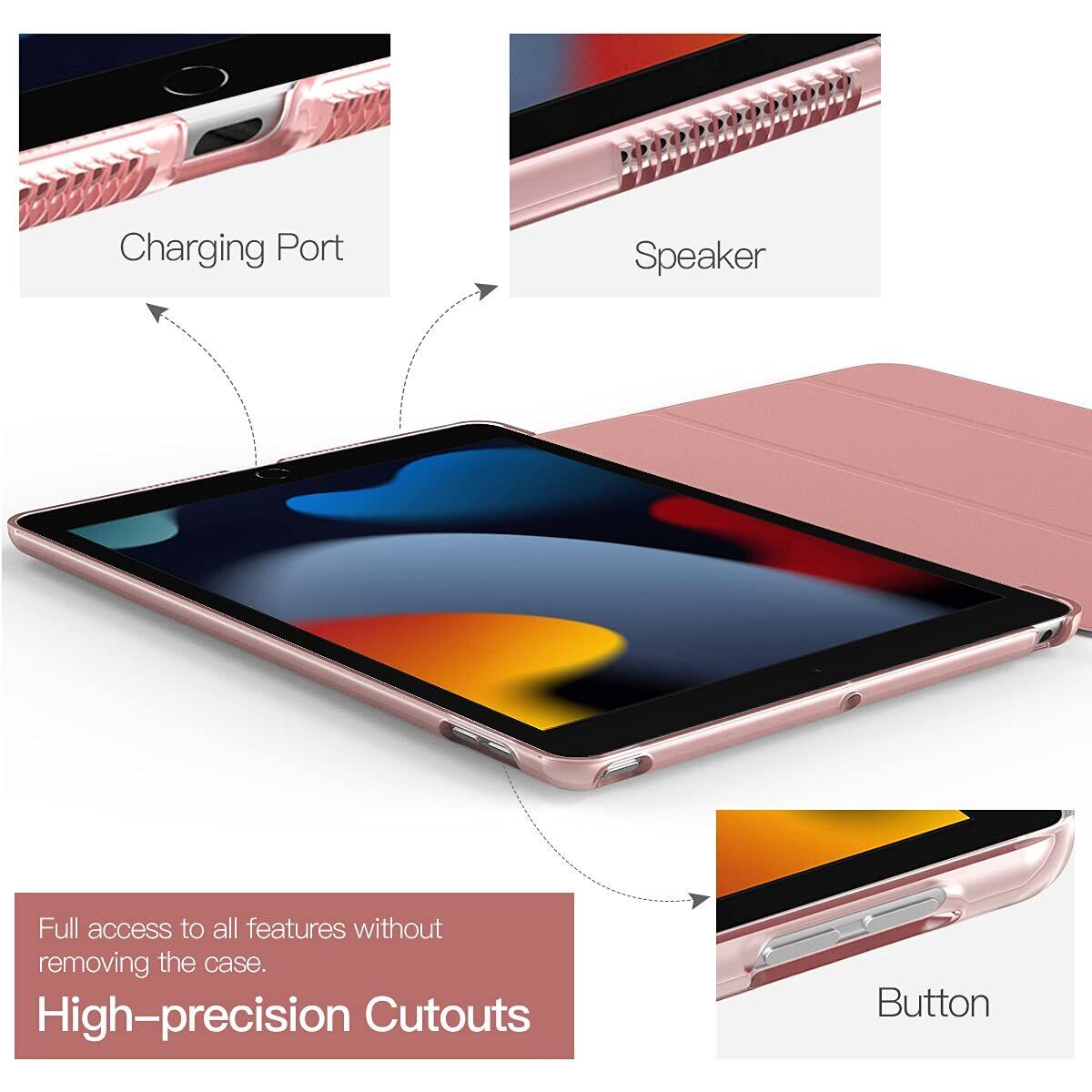 iPad 9世代 ケース iPad9 2021 iPad8 2020 iPad 10.2ケース 2019 TiMOVO ipad 第9世代/第8世代/第7世代ケース 10.2インチ 半透明 ハードカバー PUレーザー 開閉式 三つ折り スタンド マグネット オートスリープ 耐衝撃 軽量 落下防止 精密設計 着脱簡単 RoseGold