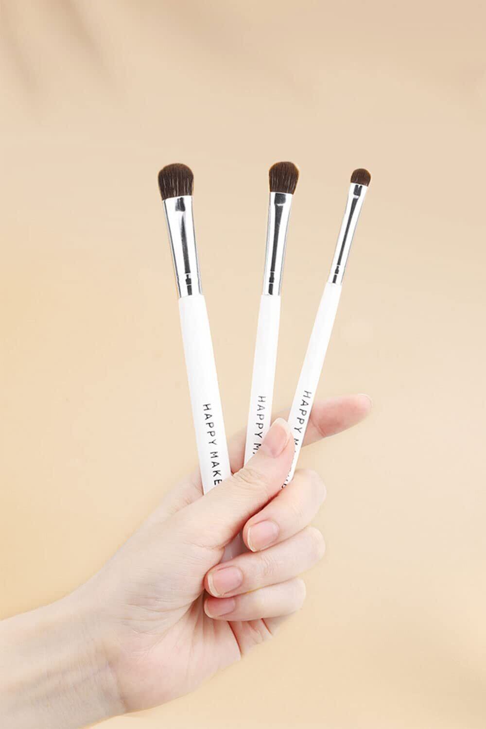 【パッケージ】アイシャドウブラシ 3本セット。大きさの異なる3つのブラシが、メイクツールを次のレベルに引き上げて、より美しく見せることができます。メイクアップ アーティスト、初心者、スタジオ、サロン、自宅旅行での使用に適しています。