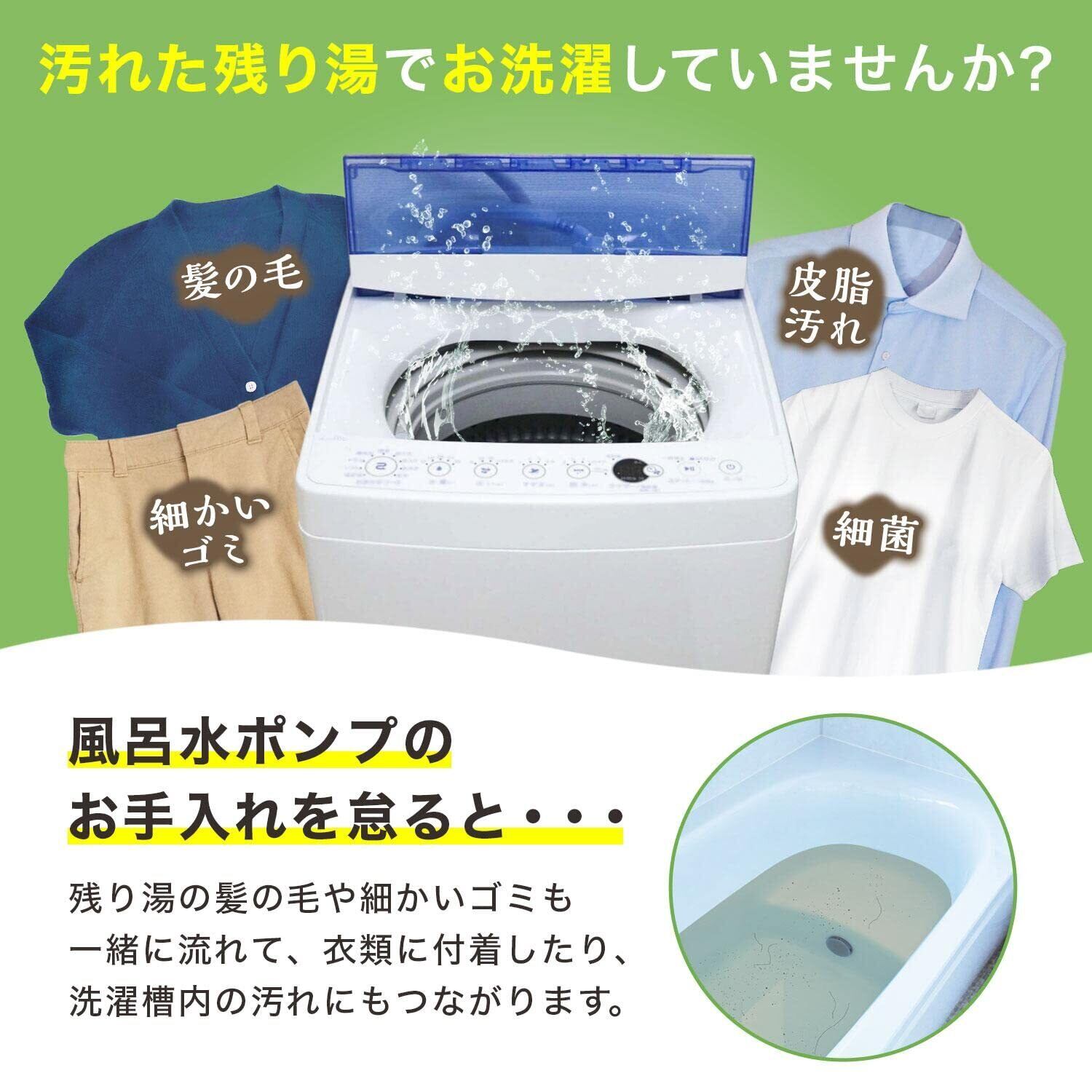 残り湯のゴミをキャッチしてキレイなお水でお洗濯!