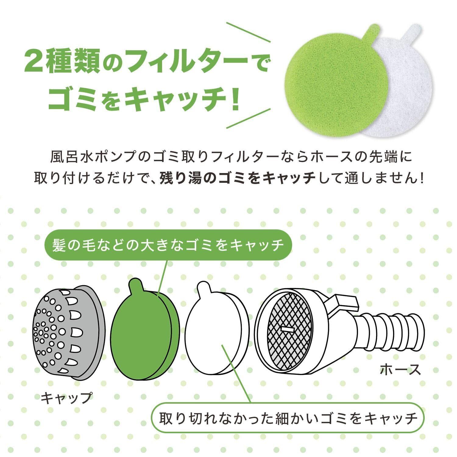 コモライフ(Comolife) 風呂水ポンプのゴミ取りフィルター (各フィルター8枚入り) 風呂水ポンプ 風呂水フィルター ゴミ取りフィルター バスポンプ 給水ポンプ ポンプフィルター フィルター 抗菌 カットOK 耳付き ホース 掃除 お風呂 洗濯 残り湯 細菌 髪の毛 ゴミ 皮脂汚れ 【交換目安:約1ヶ月】 【日本製】