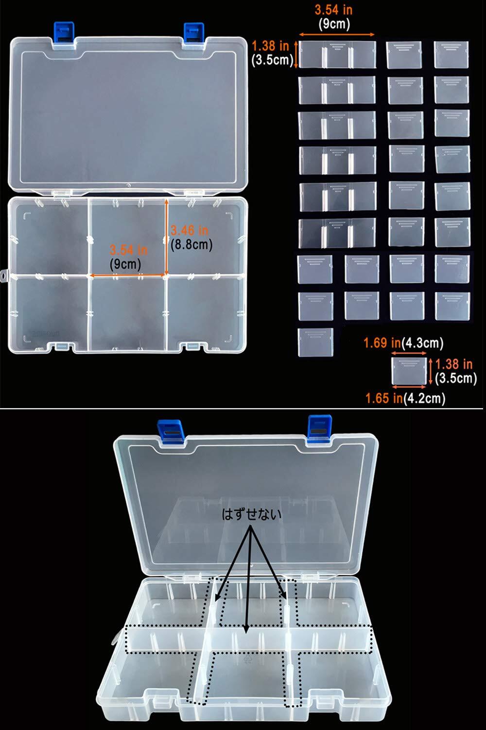 DUOFIRE アクセサリー収納 小物収納ケース 透明ボックス 頑丈な整理箱 パーツ入れ ジュエリー 釣りフック ビーズ収納 小物 雑貨入れ 【Lサイズ 2個セット】 (34グリッド 蓋付き ホワイト)