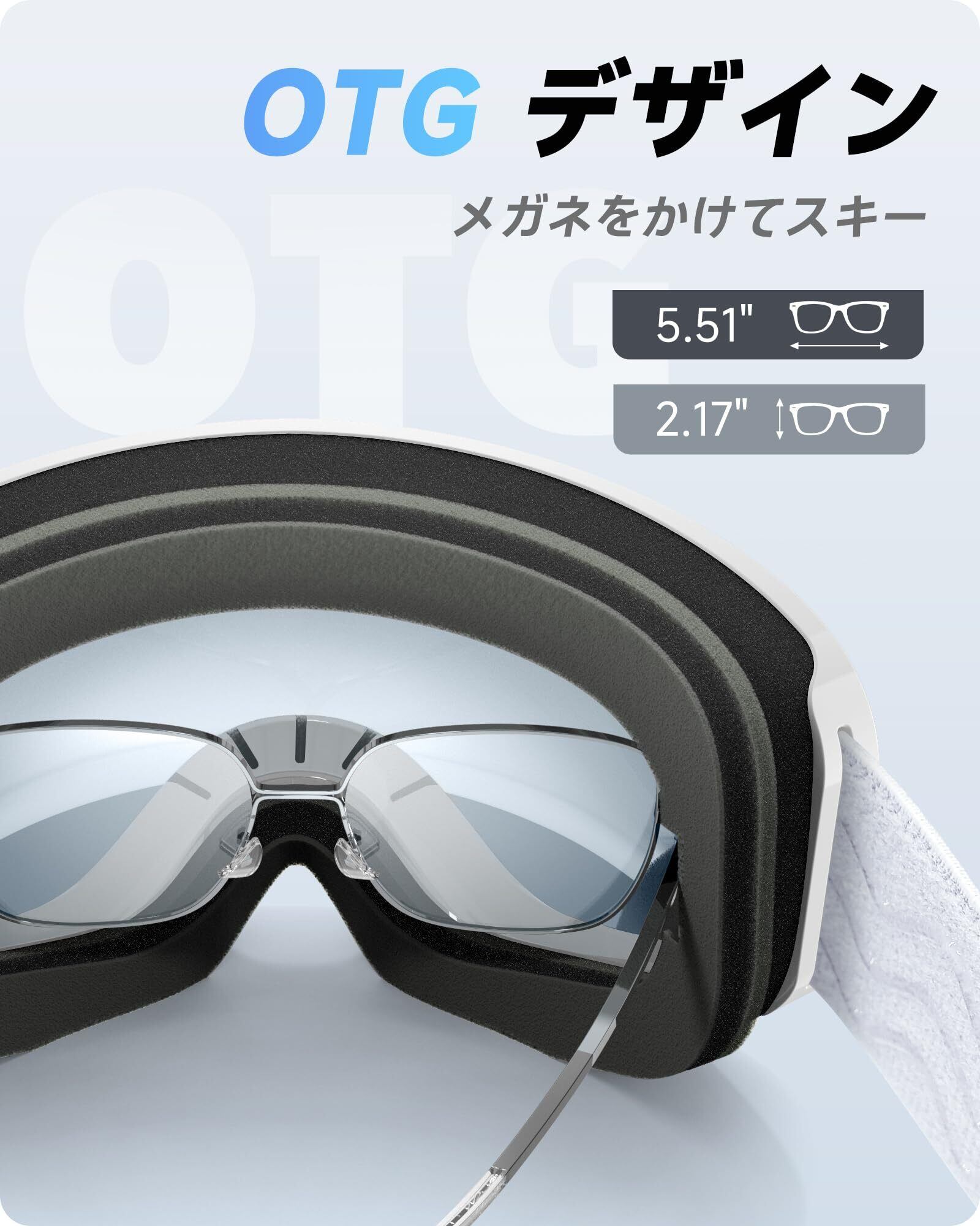 【OTG (メガネ対応) デザイン】RIOROOスキーゴーグルはOTGデザインが特徴で、大小のフレームメガネにフィットします。スキーゴーグルの下に度付きメガネを着用すると、近視でも路面がはっきりと見え、雪景色を楽しむことができ、スキーの楽しさと安全性が高まります。スキー、スケート、アルペンスキーに適しています。