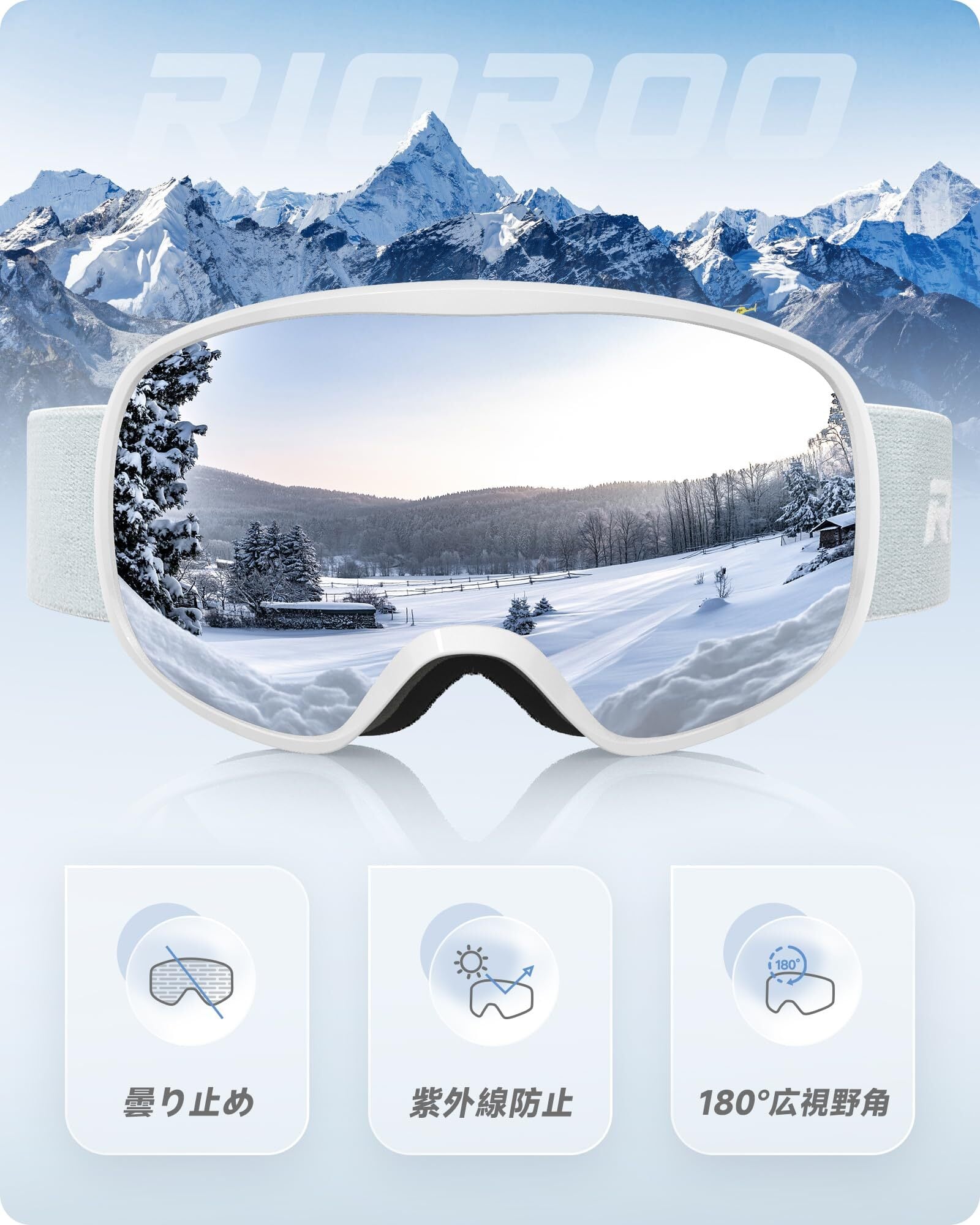 [RIOROO] スキーゴーグル スノーボードゴーグル OTGメガネ対応 広視野 球面レンズ 100% UVカット 曇り止め 防風/防雪 柔軟 耐衝撃 メンズ レディース 大人 ユース