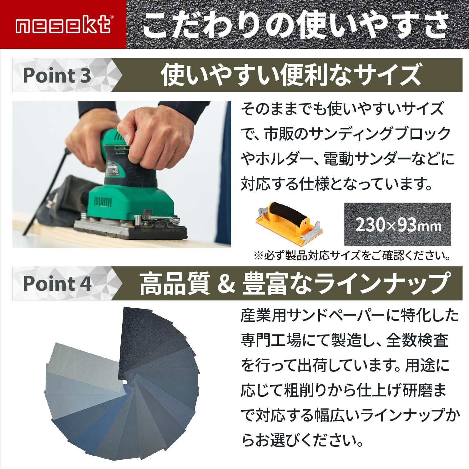 【規格サイズだからサンダーにも対応】電動サンダーやサンディングブロックなどで幅広く採用されている230mm×93mmサイズを採用しました。手作業でもちょうど良いサイズなので切らずにそのまま使用可能です。