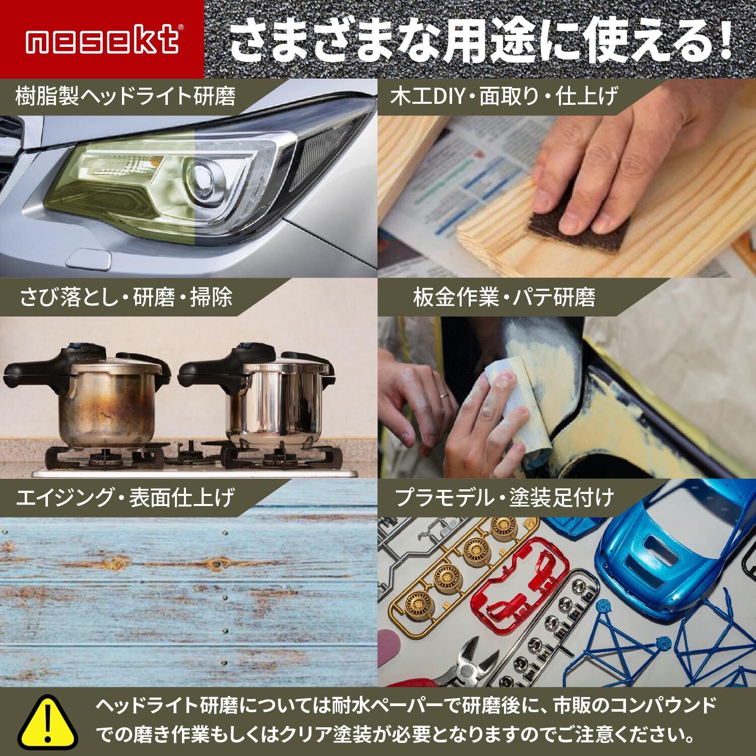 【マルチに使える万能紙やすり】空研ぎだけでなく目詰まりしにくい水研ぎに適しており、樹脂製ヘッドライトの研磨、パテ削りや塗装下地処理、木工やホビー、クラフトでの研磨作業、サビ落としや汚れ落としなど幅広くご使用いただけます。