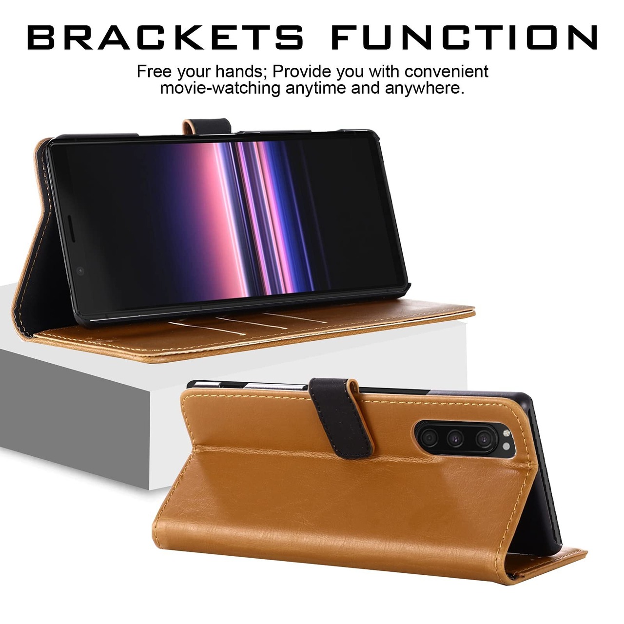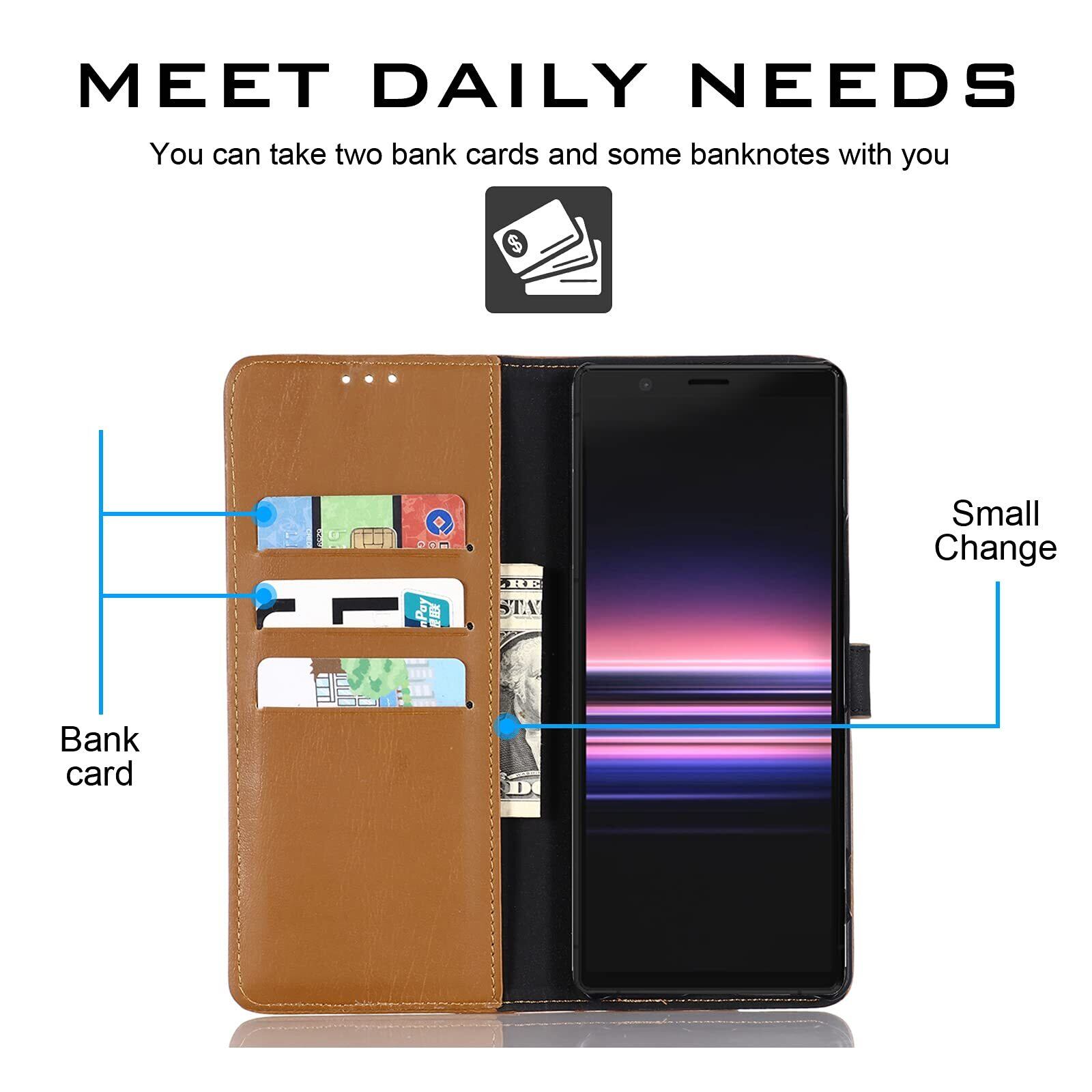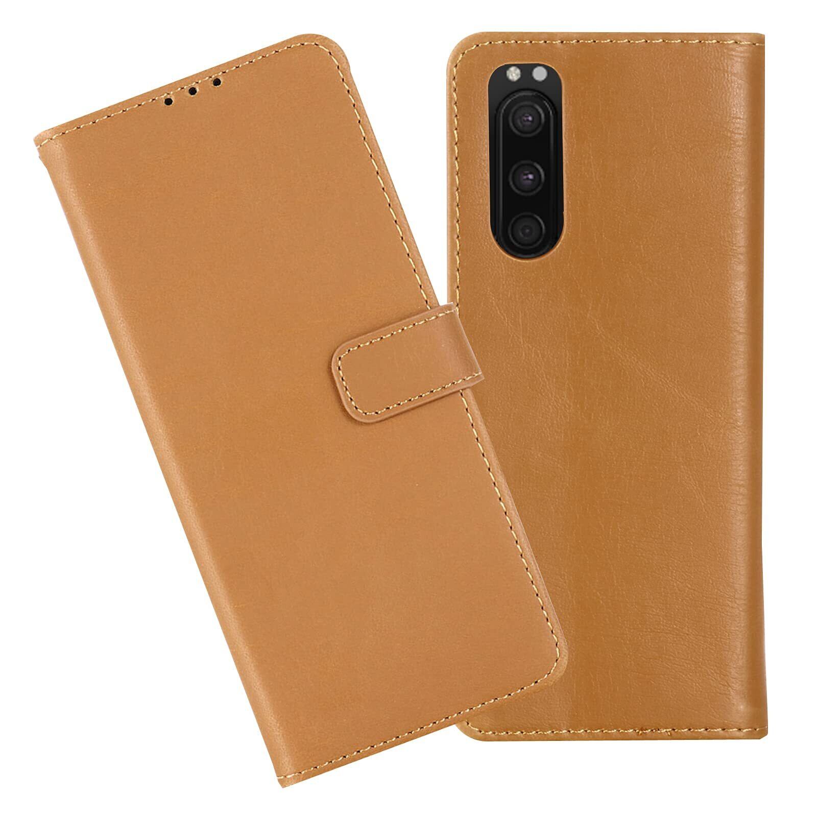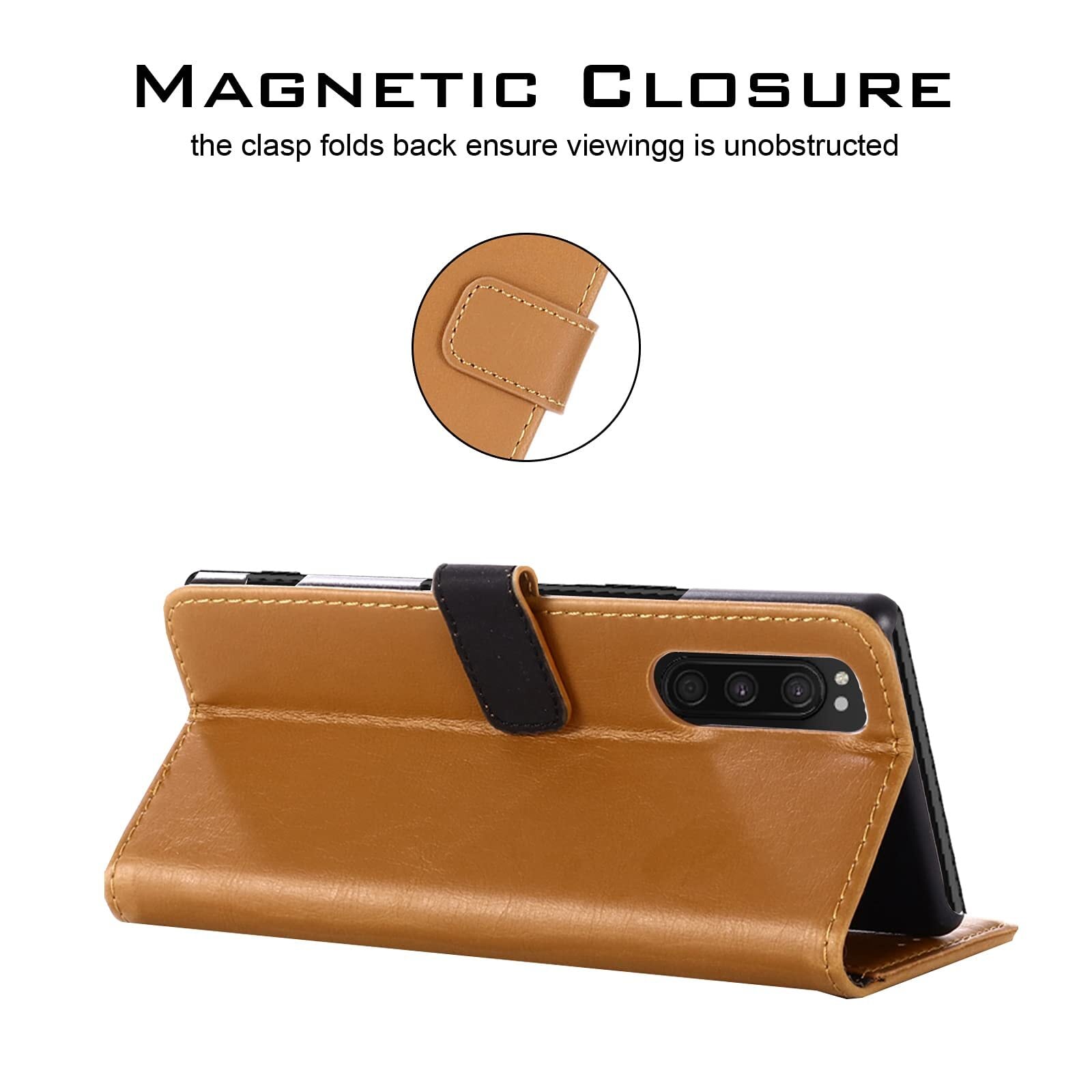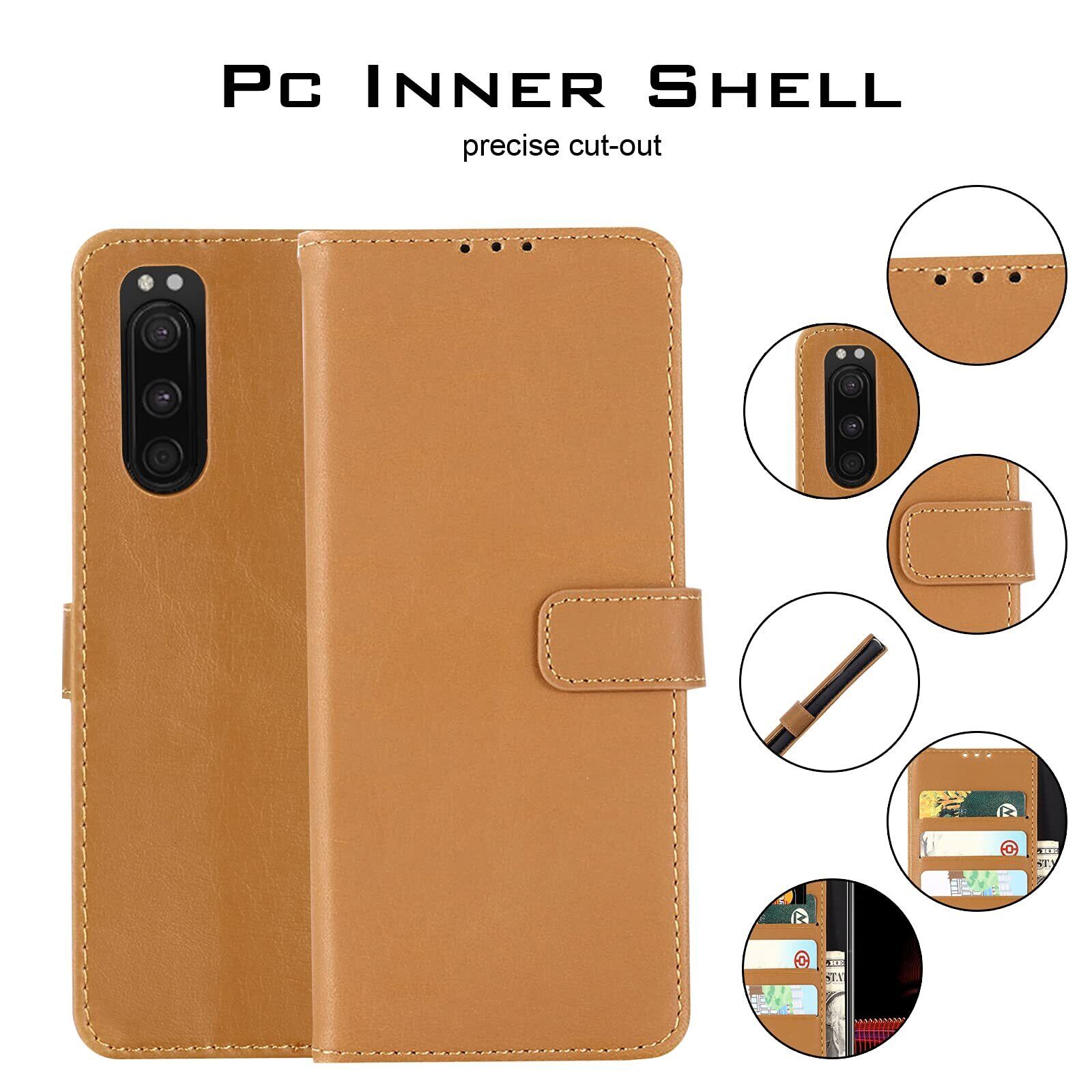 【Anrek】互換性 SONY Xperia 5/SOV41/SO-01M/901SO 兼用 ケース 手帳型 カバー (ブラウン) エクスペリア5 手帳型ケース カード収納 スタンド機能付き 財布型 PUレザー シンプル ビジネス風 ソニーxperia5 KHAKI