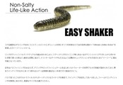 シリーズ:【イージーシェイカー (Easy Shaker)】……「バス・アジング・ロックフィッシュ」など、フィールド・魚種を選ばず使える「リングボディ+ノンソルティマテリアル」のストレートワーム!! コアは細身ながらリングをまとうことで、シルエットにボリュームを持たせつつ生命体ならではの自然な動きを実現。 釣れる集魚剤「天然イカフレーバー(※一部未配合カラーあり)」や、「クリア系」「グロー系」「シャンパン系」「UV発光系」など、カラーバリエーションも豊富。