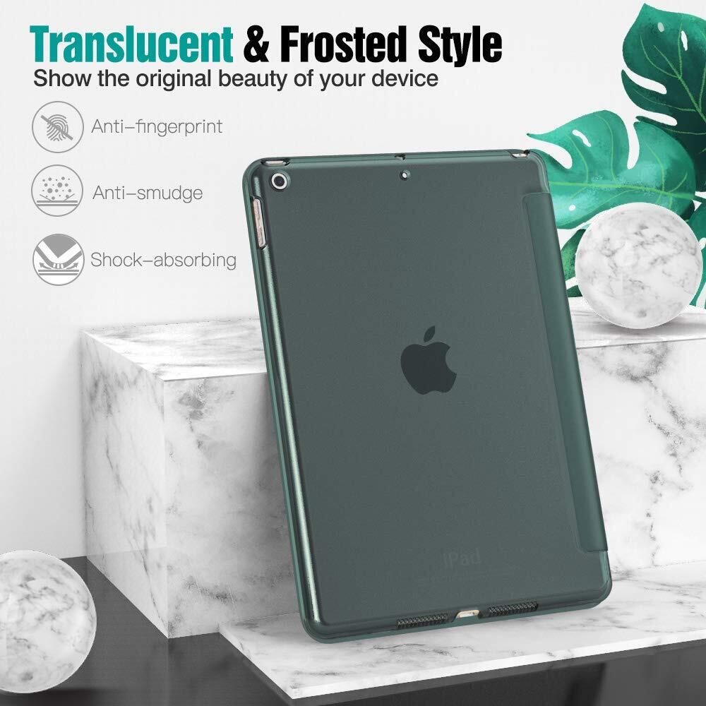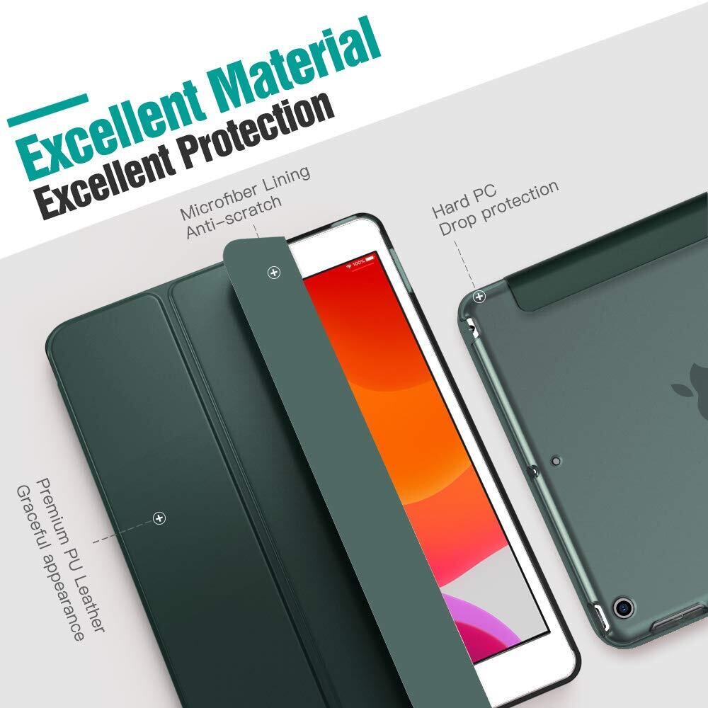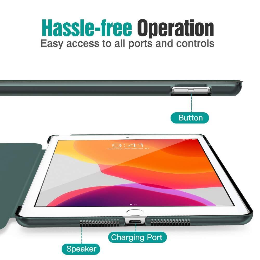 iPad 10.2 ケース 2021/2020/2019 iPad 9世代 ケース Dadanism 第9世代/第8世代/第7世代 アップル iPad 10.2インチ 2021/2020/2019モデル 半透明 カバー スタンドケース オートスリープ機能 軽量 薄型 PU+PC マイクロファイバー裏地 耐久性 全面保護 DarkGree
