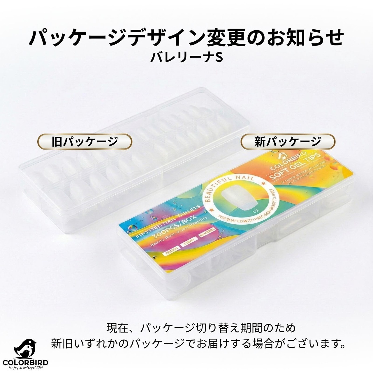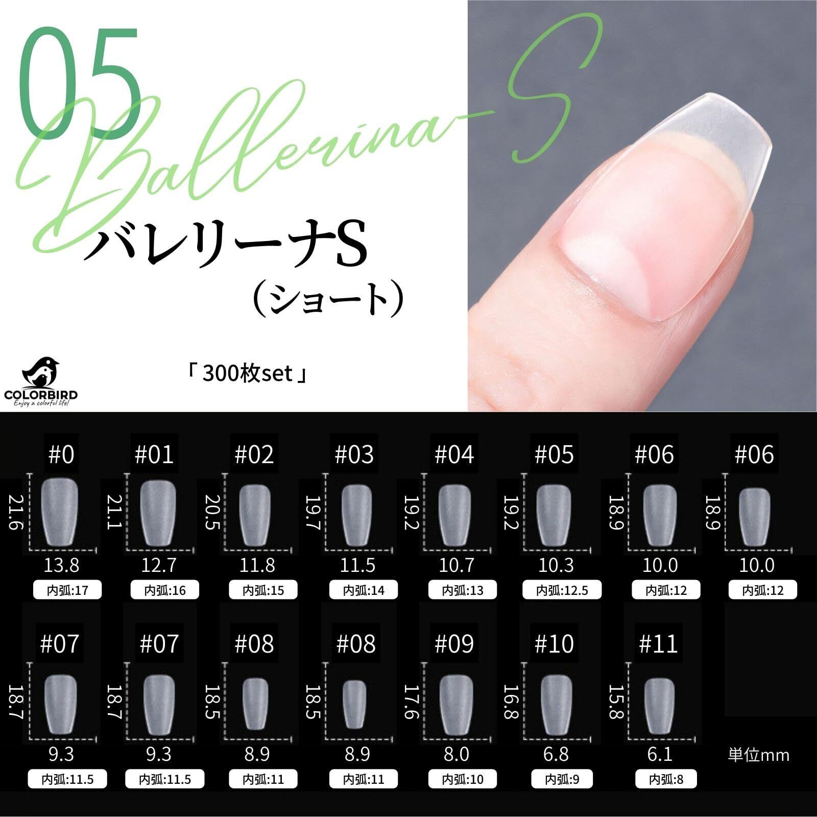 COLORBIRD ネイルチップ 超薄 ショート クリア サンディング 自然なフィット感 つけ爪 (バレリーナS, 300pcs)