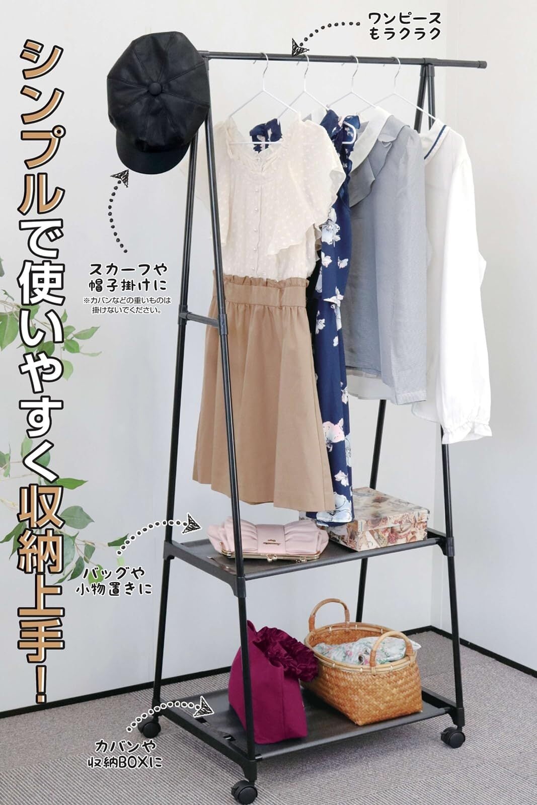 トレードワン(TRADE ONE) ハンガーラック 2段 幅83×奥行83×高さ156cm 耐荷重10kg 棚板付き 組立簡単 軽量 大容量 ブラック 30693