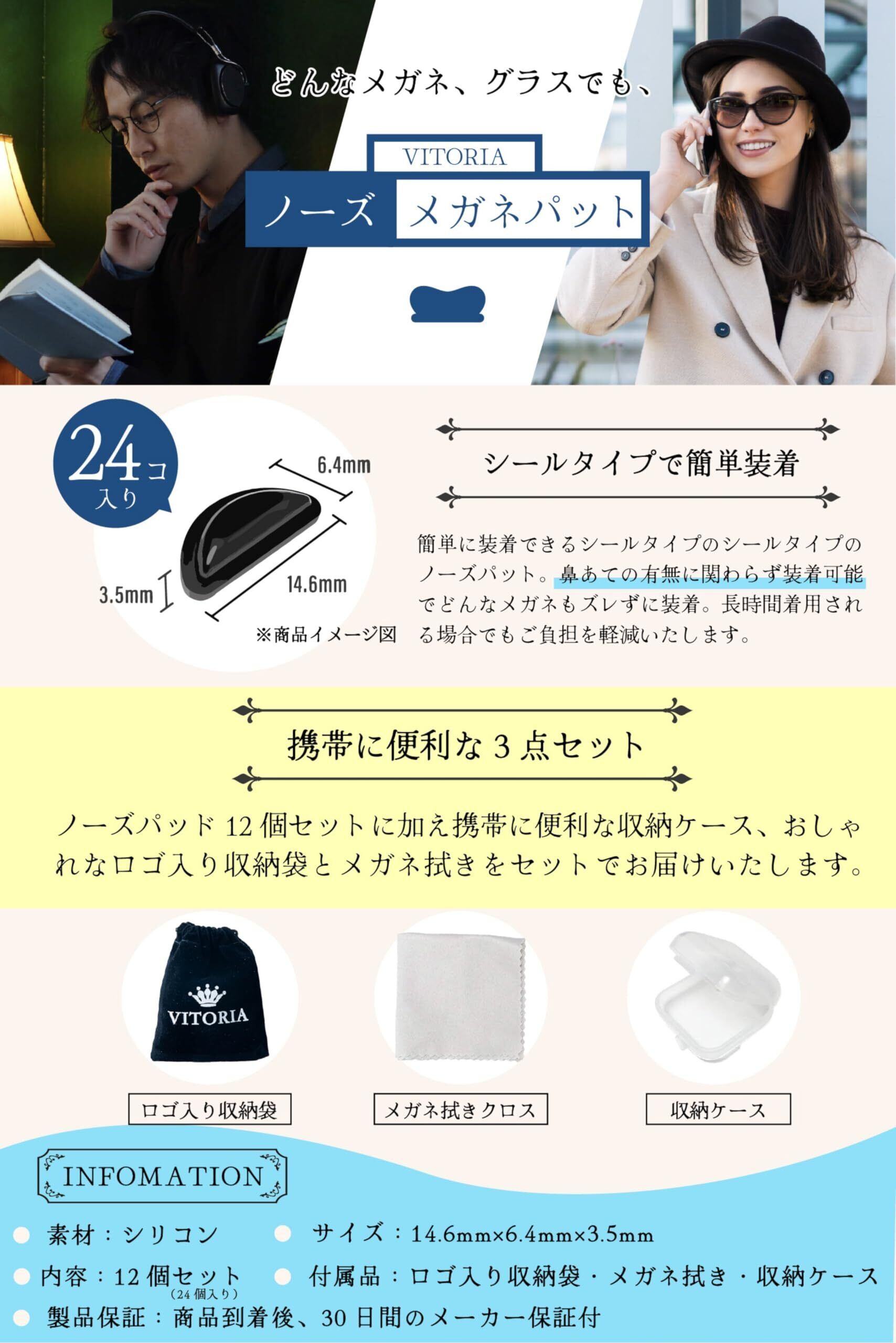 [ヴィトリア] シリーズ累計販売数5万個達成 眼鏡 メガネ 鼻パッド ノーズパッド ずれ落ち防止 【12セット 3M両面テープ】