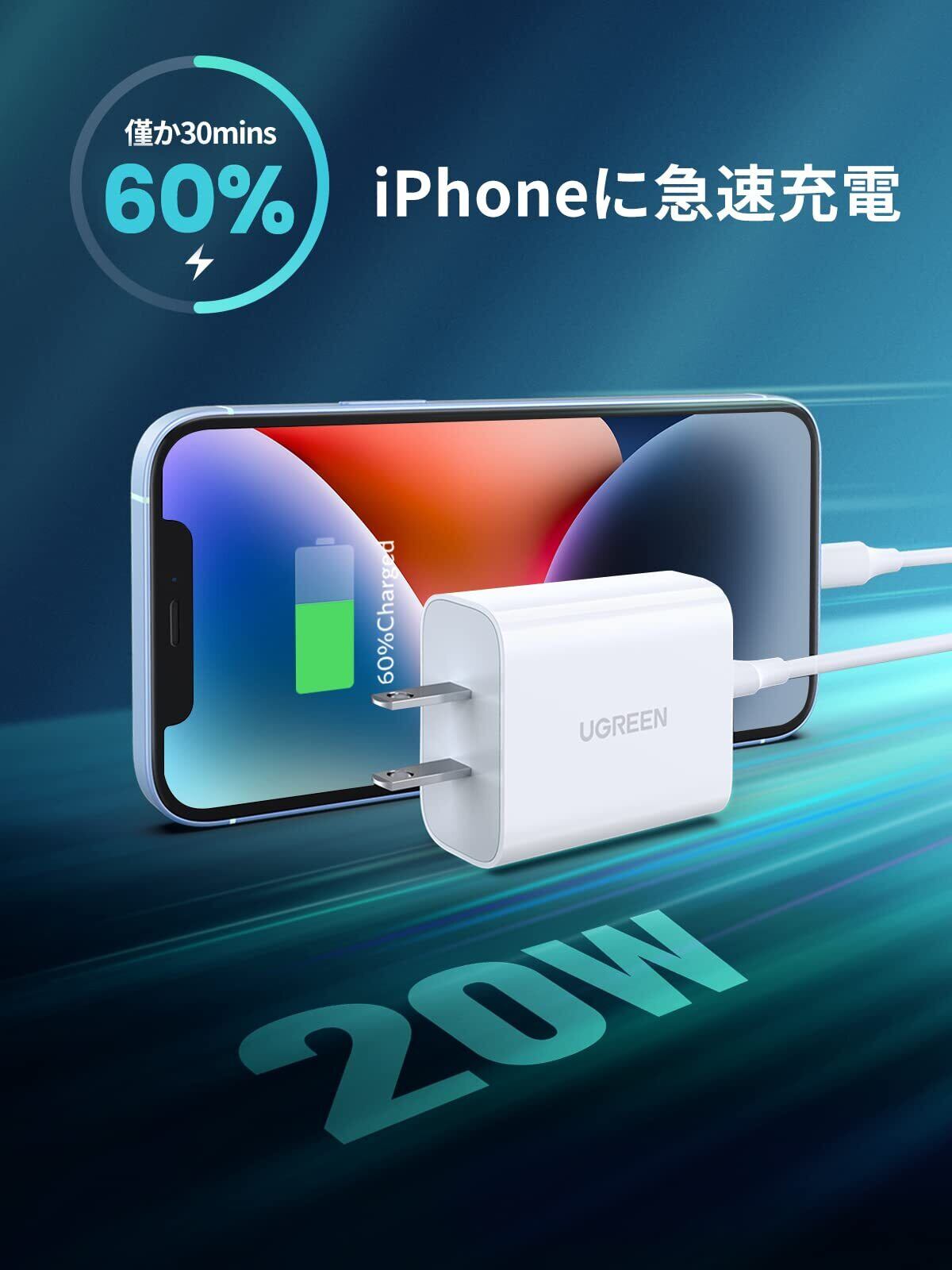 【リモートワークに最適】非常に軽量かつコンパクトなため、出張や自宅などでのリモートワークでも快適にご使用いただけます。UGREEN 20W USB C PD充電器本体x1,取扱説明書x1。ご注意:急速充電を実現しようとすれば、お使いの機種(非掲載の機器)はPD/QC急速充電に対応する必要がありますので、ご購入の前にご確認ください。