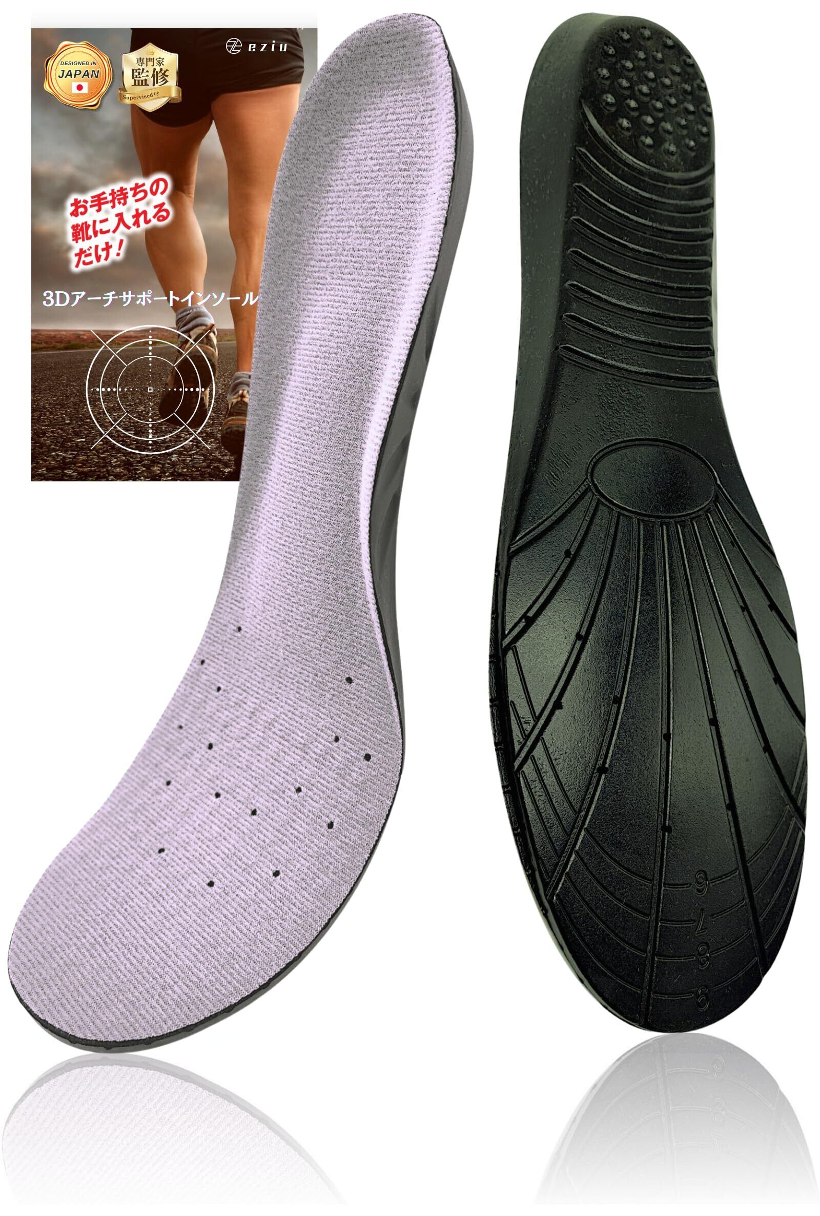 【箱根駅伝選手も推奨】 インソール 3Dアーチサポート 衝撃吸収 中敷き 土踏まず 低反発 スポーツ 男女兼用 eziu (1組, M(23.5~26.5cm))