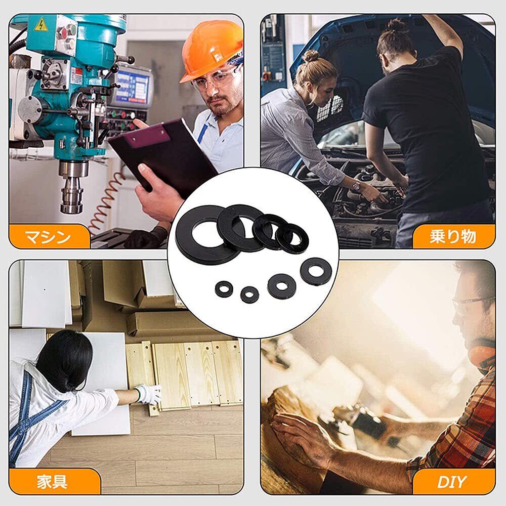 【様々な用途】ネジを締め付ける穴が大きすぎる時にネジと合わせて使うと安定に作業できます。ネジ頭部の座面が製品を傷つけることを防ぐこともできます。そして、絶縁したいところにも使用できます。