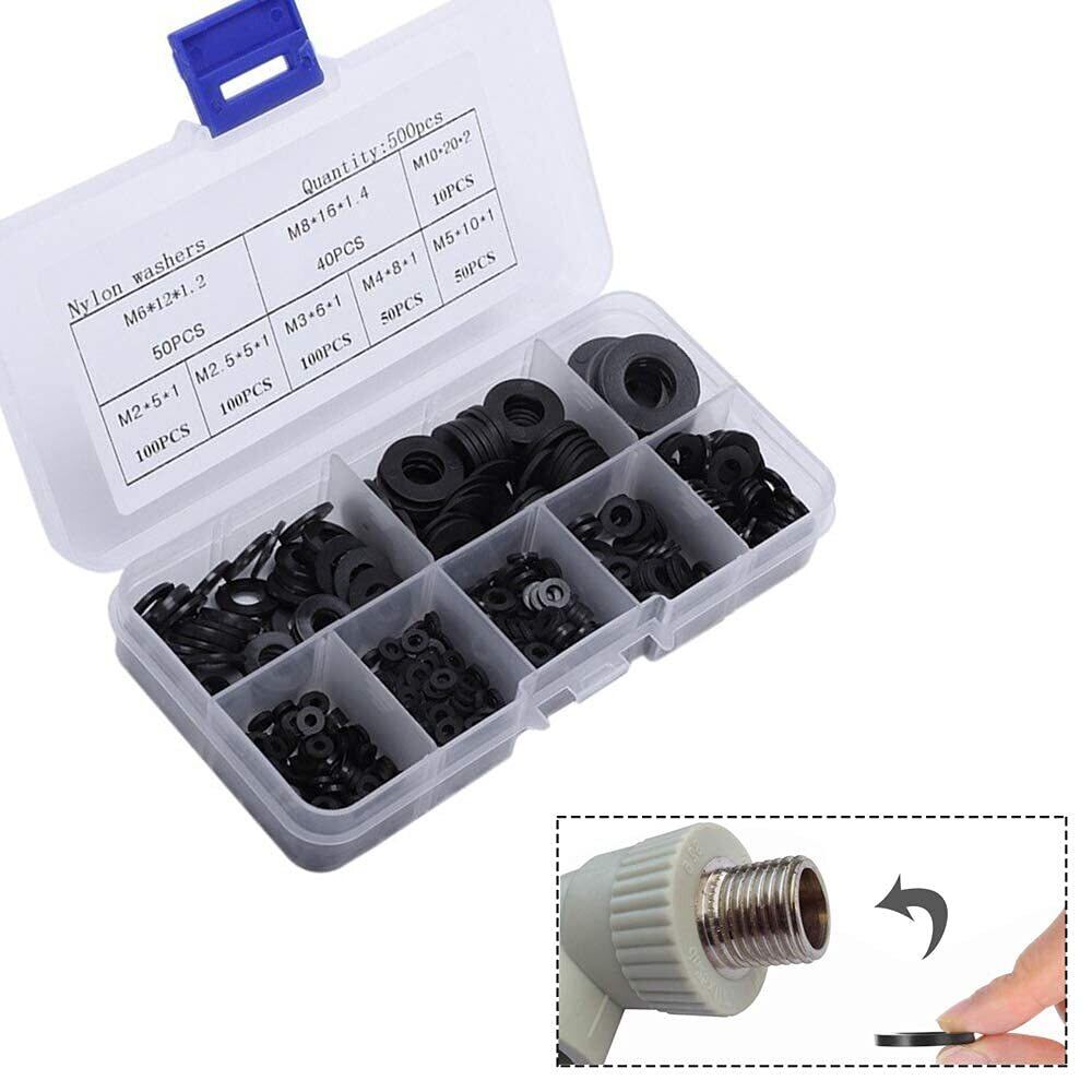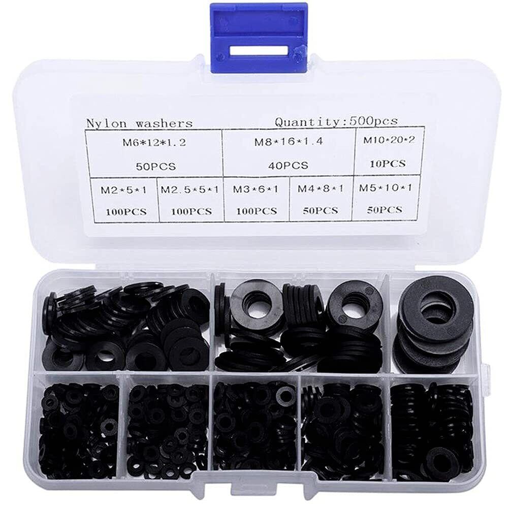 ナイロンフラット フラット ワッシャー 平座金 M2-M10 メントキット ナイロン絶縁 フラットワッシャー 収納ケース付き 補修 便利 ツール 500pcs