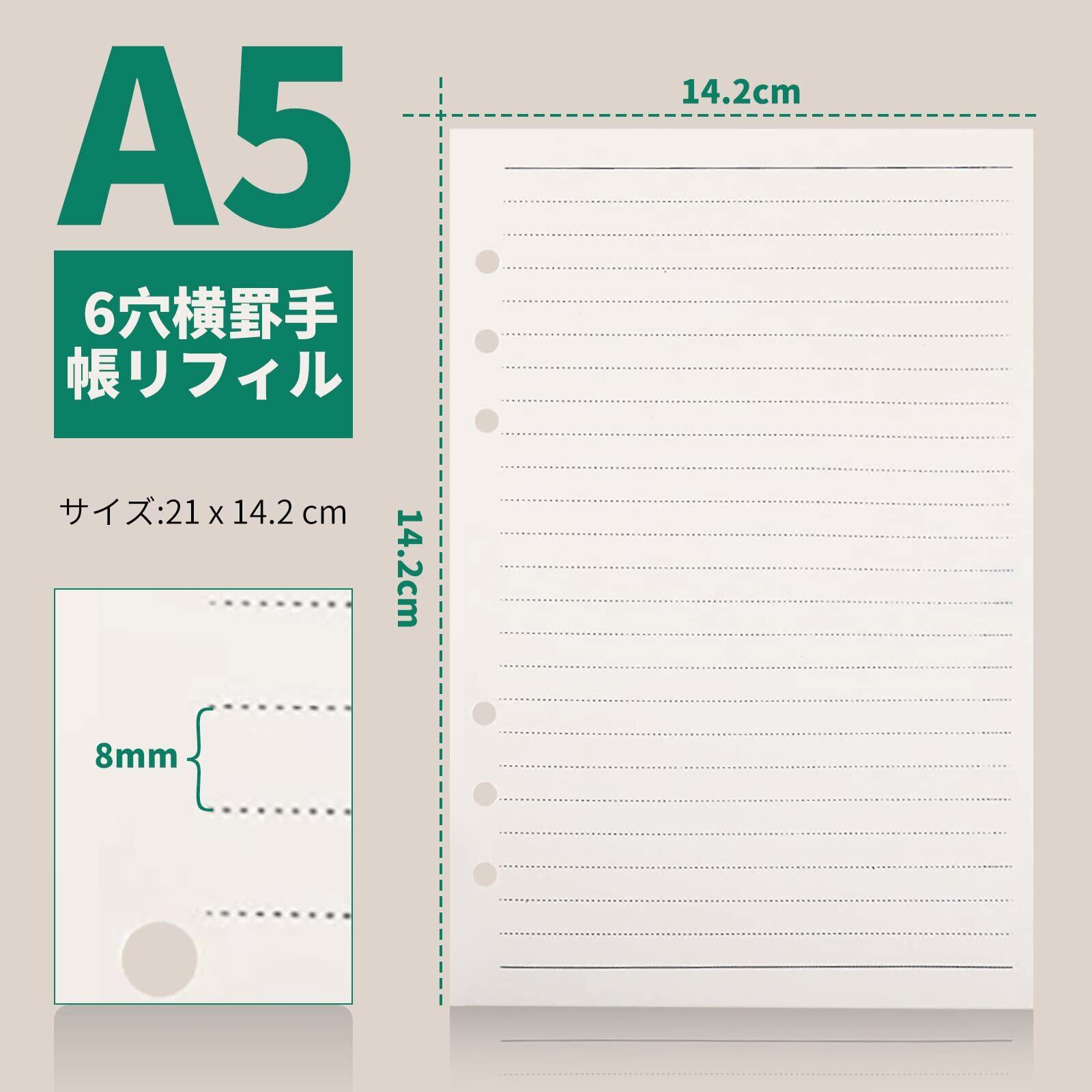 【6穴 A5 サイズ】 サイズ:A5(W142×H210mm) 便利、持ち運びしやすいポケットサイズリフィル。