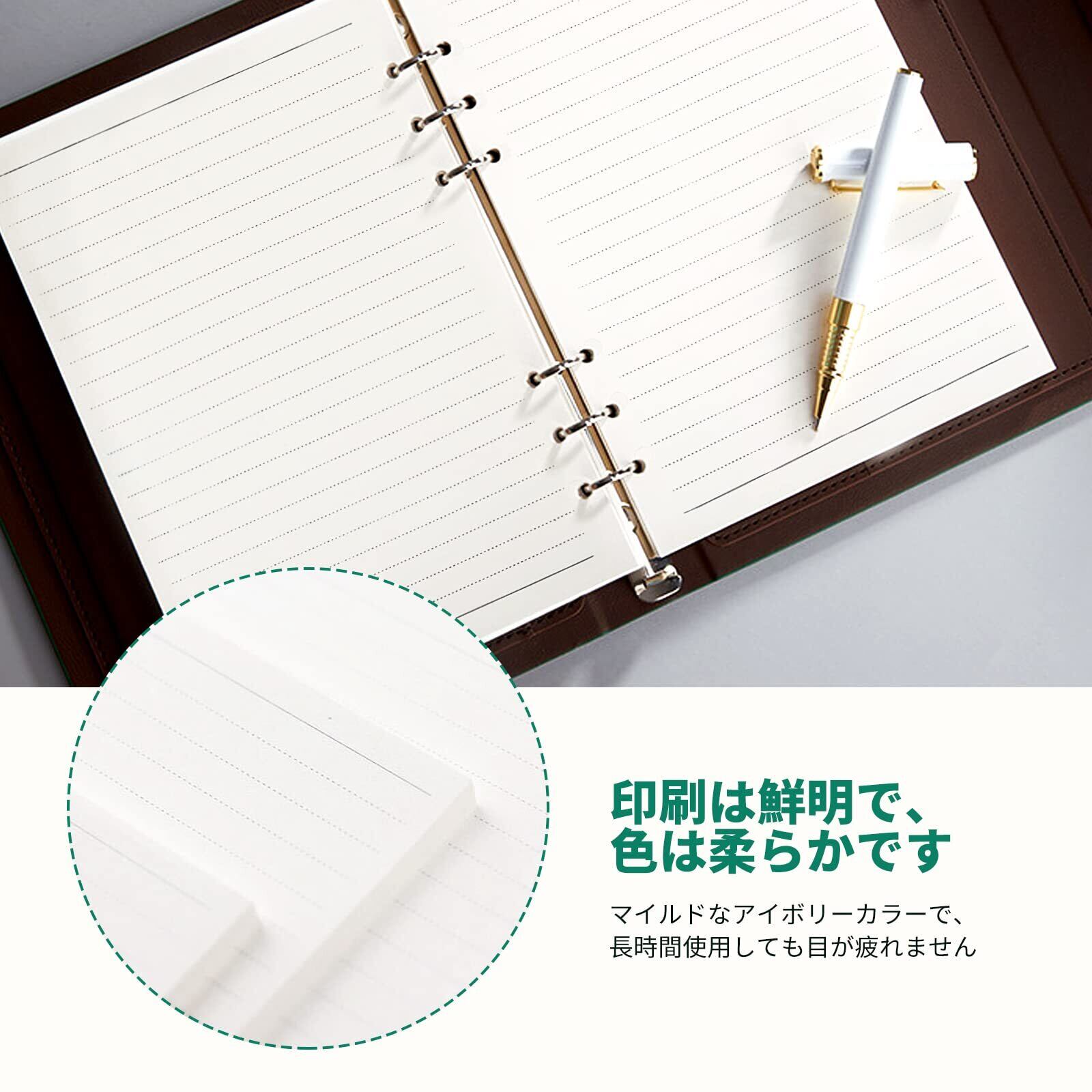 システム手帳用リフィル A5サイズ ルーズリーフ バインダー メモ ビジネス手帳 専用リーフ リフィル用紙 詰め替え用紙 厚型 A5 6穴 手帳リフィル 【45枚*4冊】 180枚 8mm 横罫 手帳用リフィルセット
