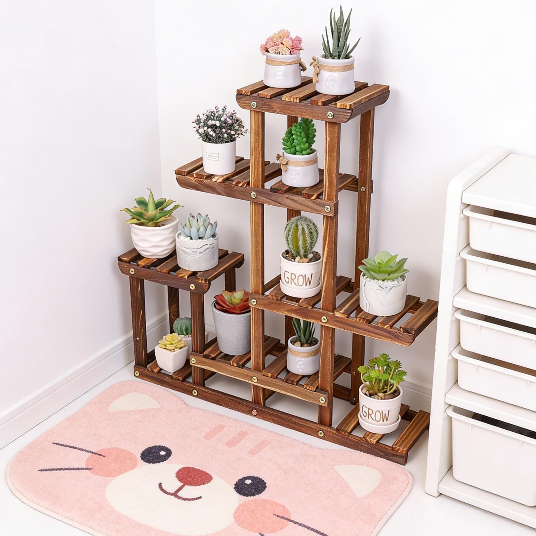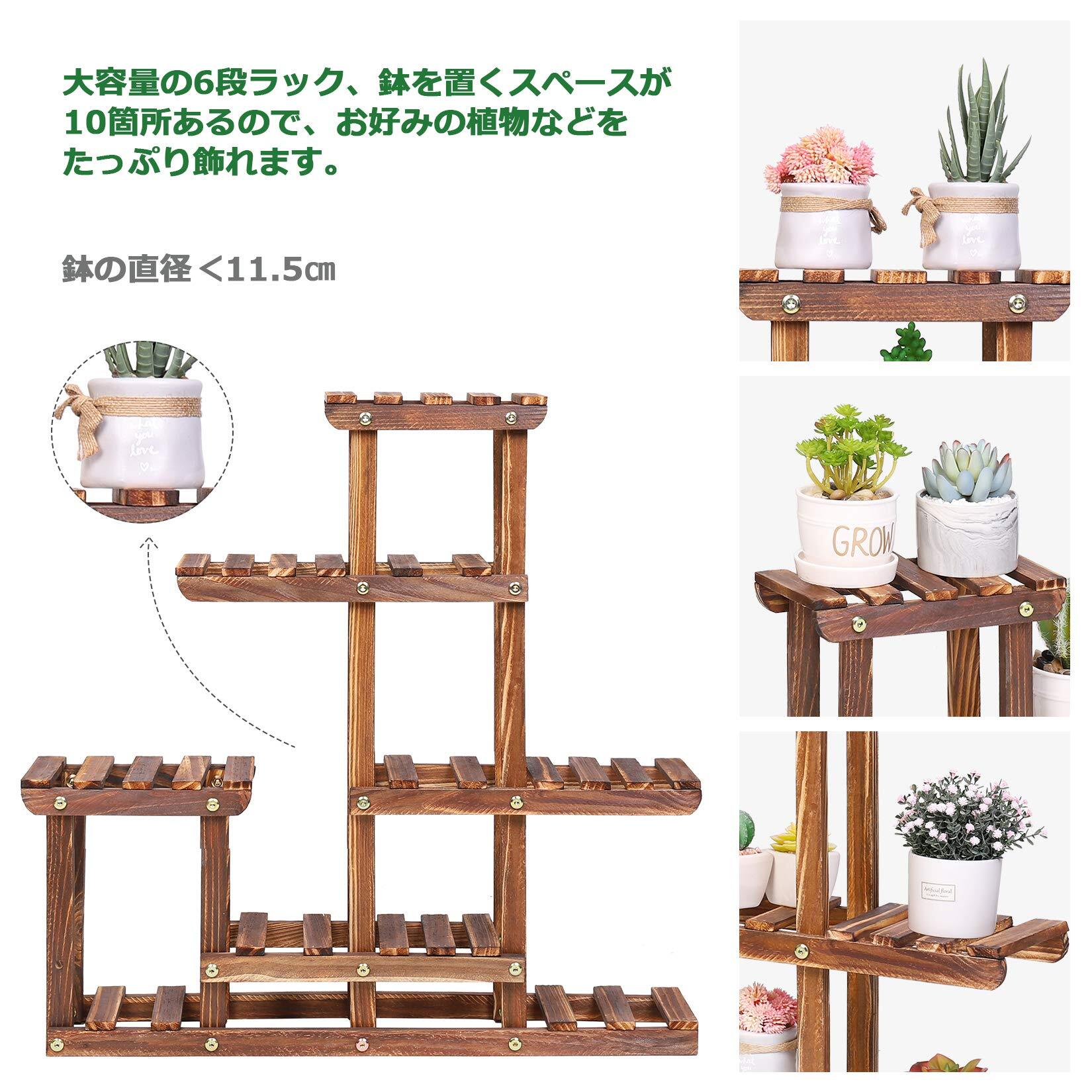 6段の大容量ラックで、鉢を置くスペースが10箇所あるので、花や植物はもちろん、ぬいぐるみなどの小物を飾るアイテムとしても活躍します。