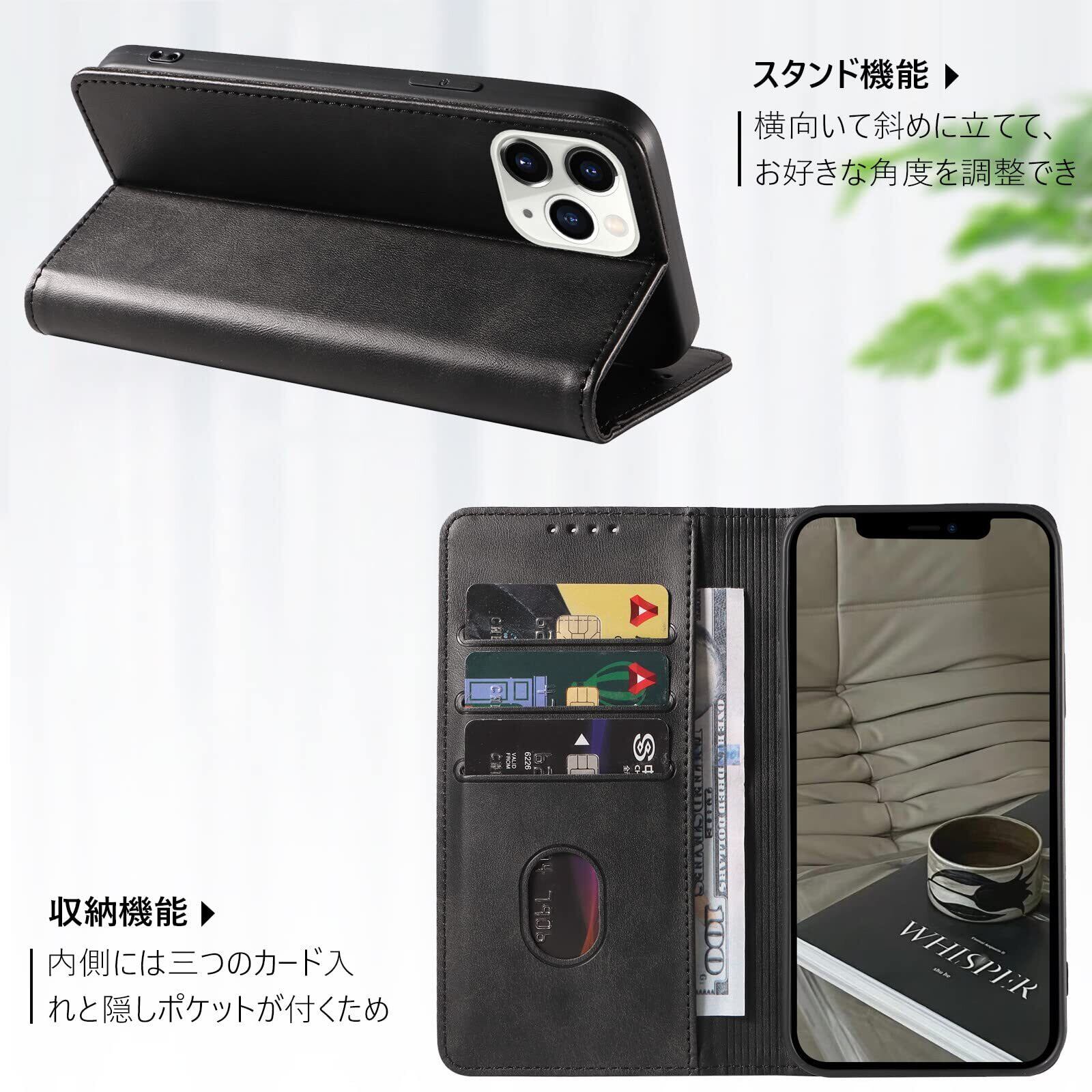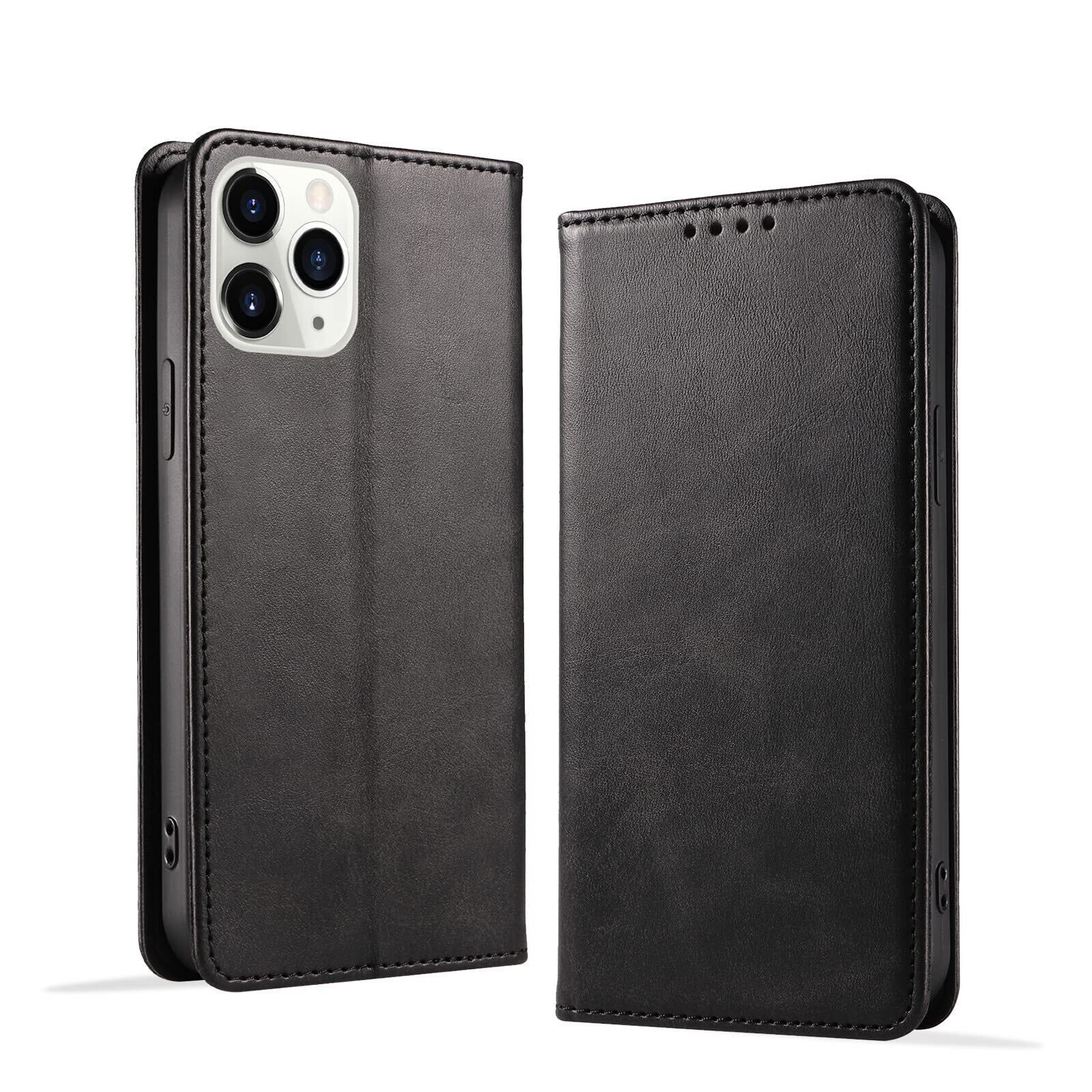 KWATUNG iphone 11pro用ケース手帳型 PUレザー 軽量 放熱性 薄型 マグネット式 アイフォン 11プロ用ケース手帳型 カード収納 スタンド機能 スマホケースiphone 11pro用 衝撃吸収 落ち着いた色 iphone11プロ用カバー【ブラック】