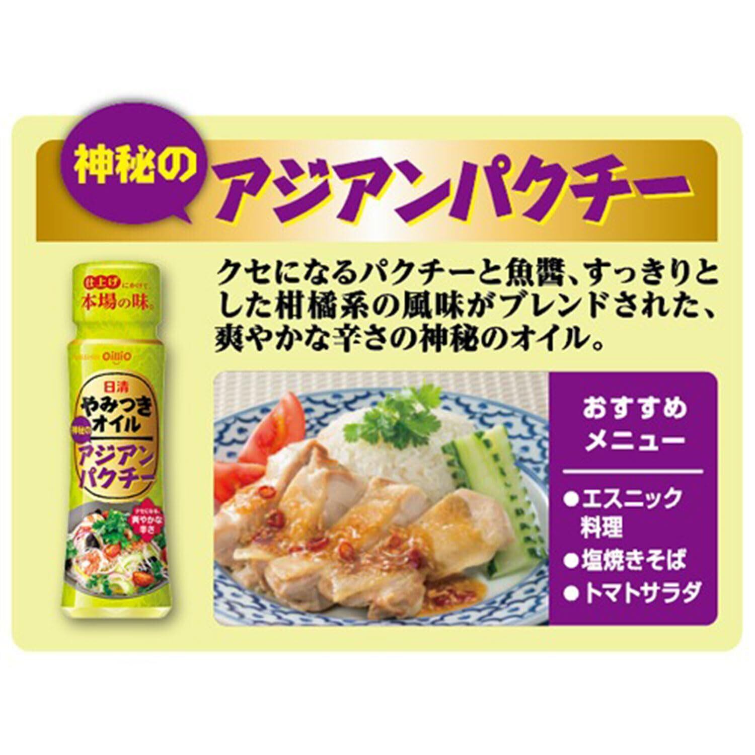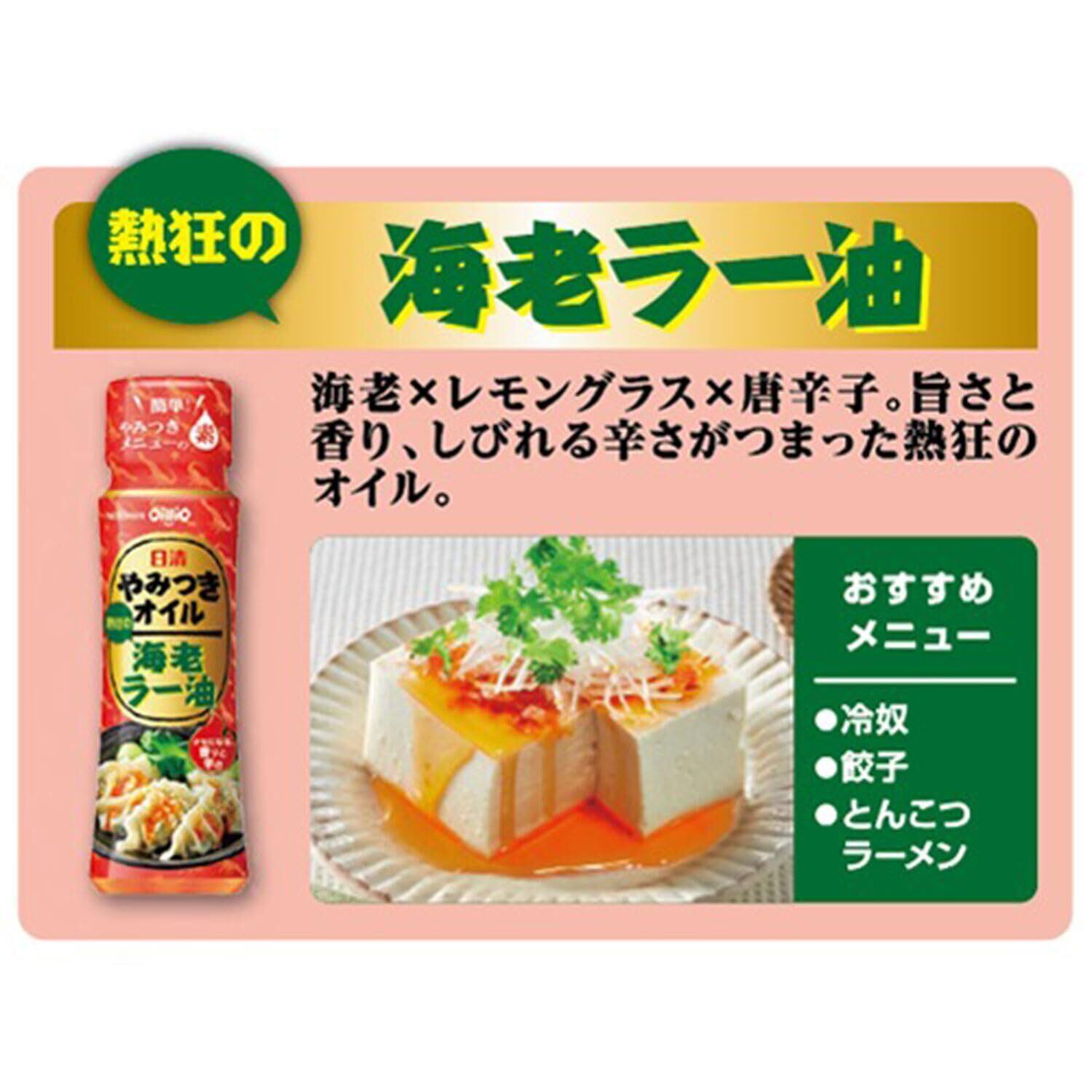 みんなが大好き、思わず「やみつく風味」が楽しめるオイルです。