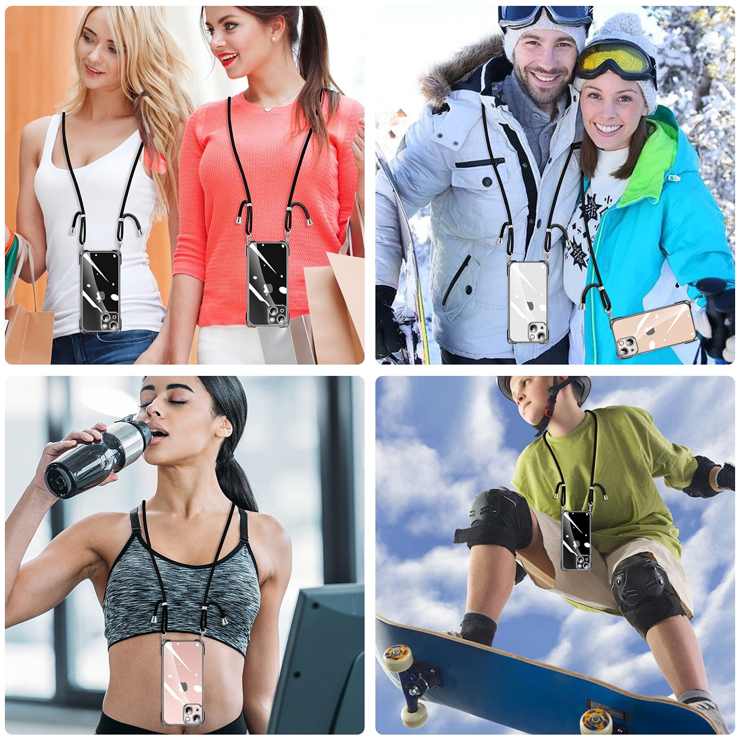 NISIILNG iPhone 14 用 ケース クリア ショルダー iPhone14 スマホケース アイフォン14 カバー 肩掛け 斜めかけ 縄掛けケース 透明 薄型 軽量 耐衝撃 TPU ストラップ付き 紐付き 斜めがけ 織りストラップ付き ネックストラップ ショルダー 縦/横 2WAY 長さ調整可能 取り外し可能 落下防止 紛失防止 (ブラック)