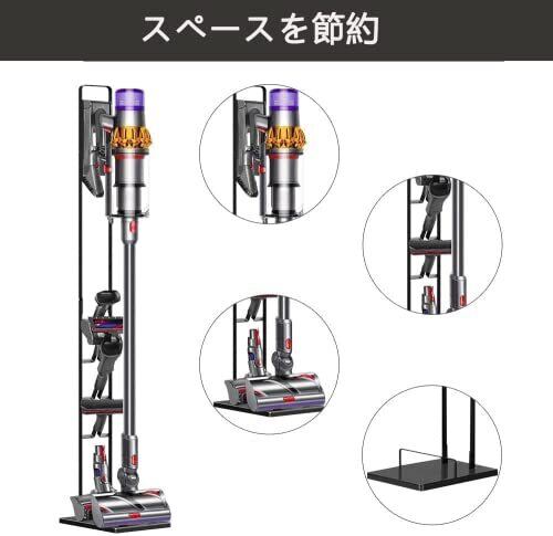 掃除機スタンド,【穴を開けず】:壁に穴を開けず、壁を傷つけないので、本体と各種付属品を収納できます。充電しながら、自立サポート式掃除機を収納します。賃貸マンションでも掃除機を簡単に収納できます。