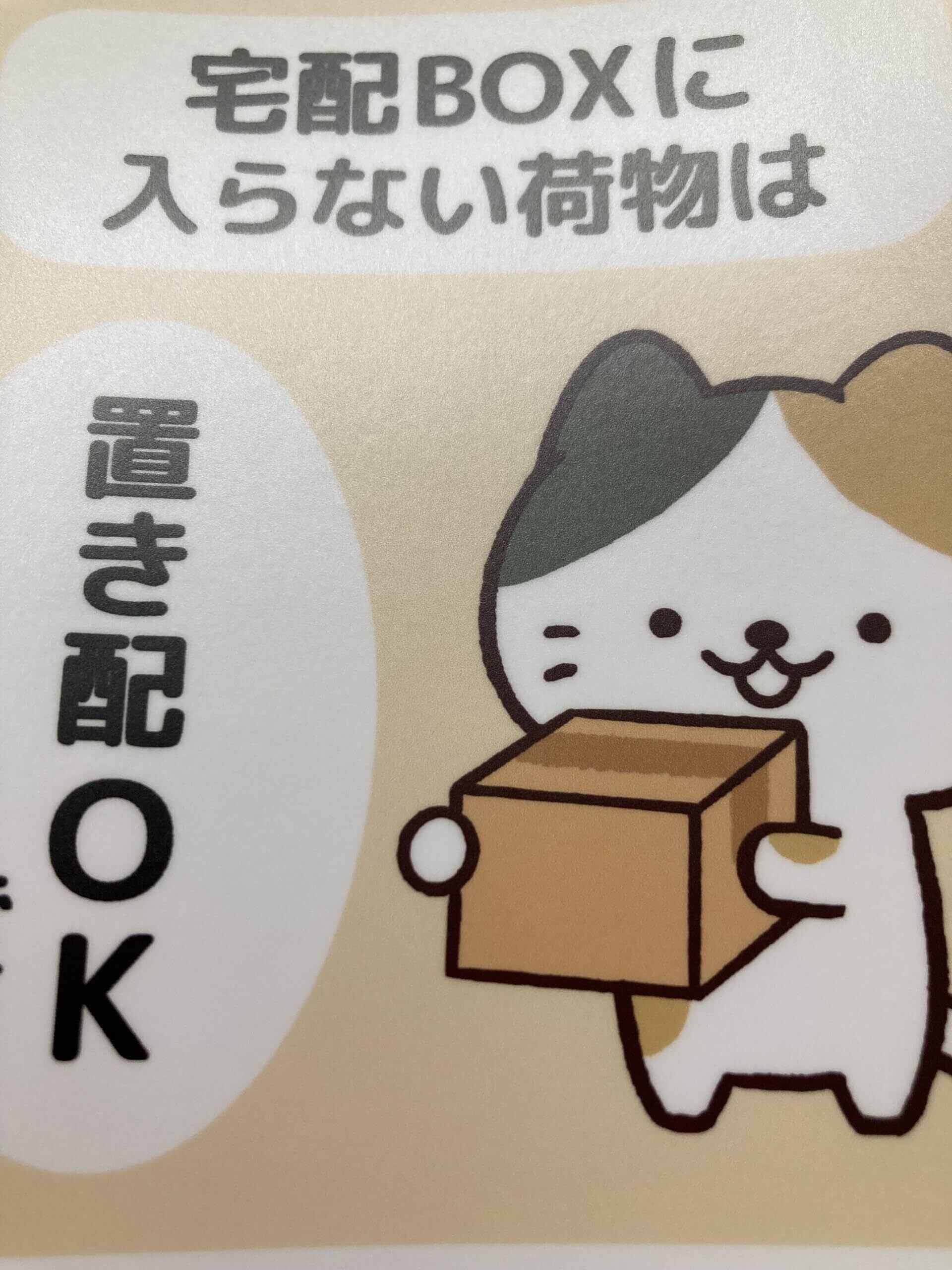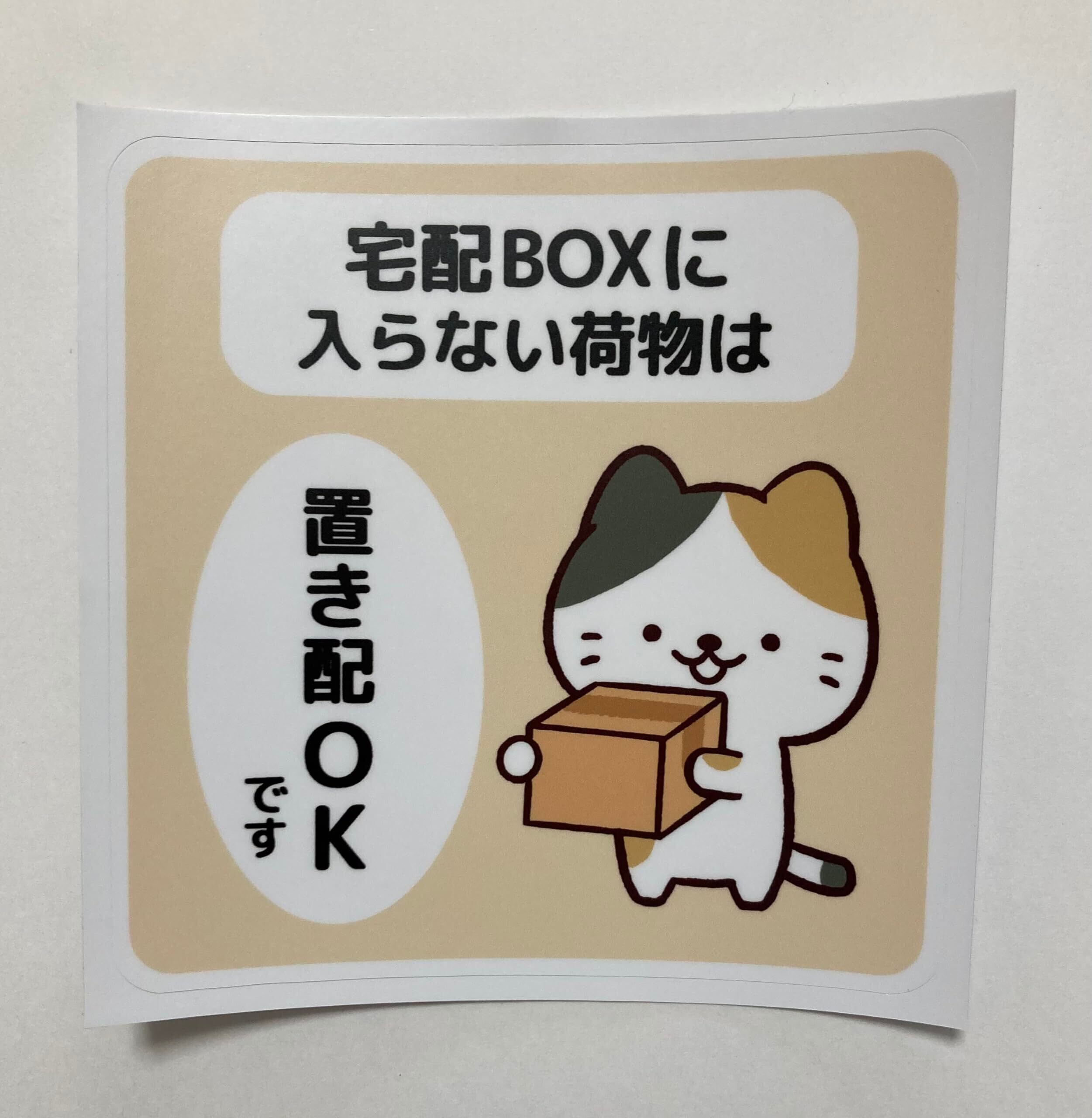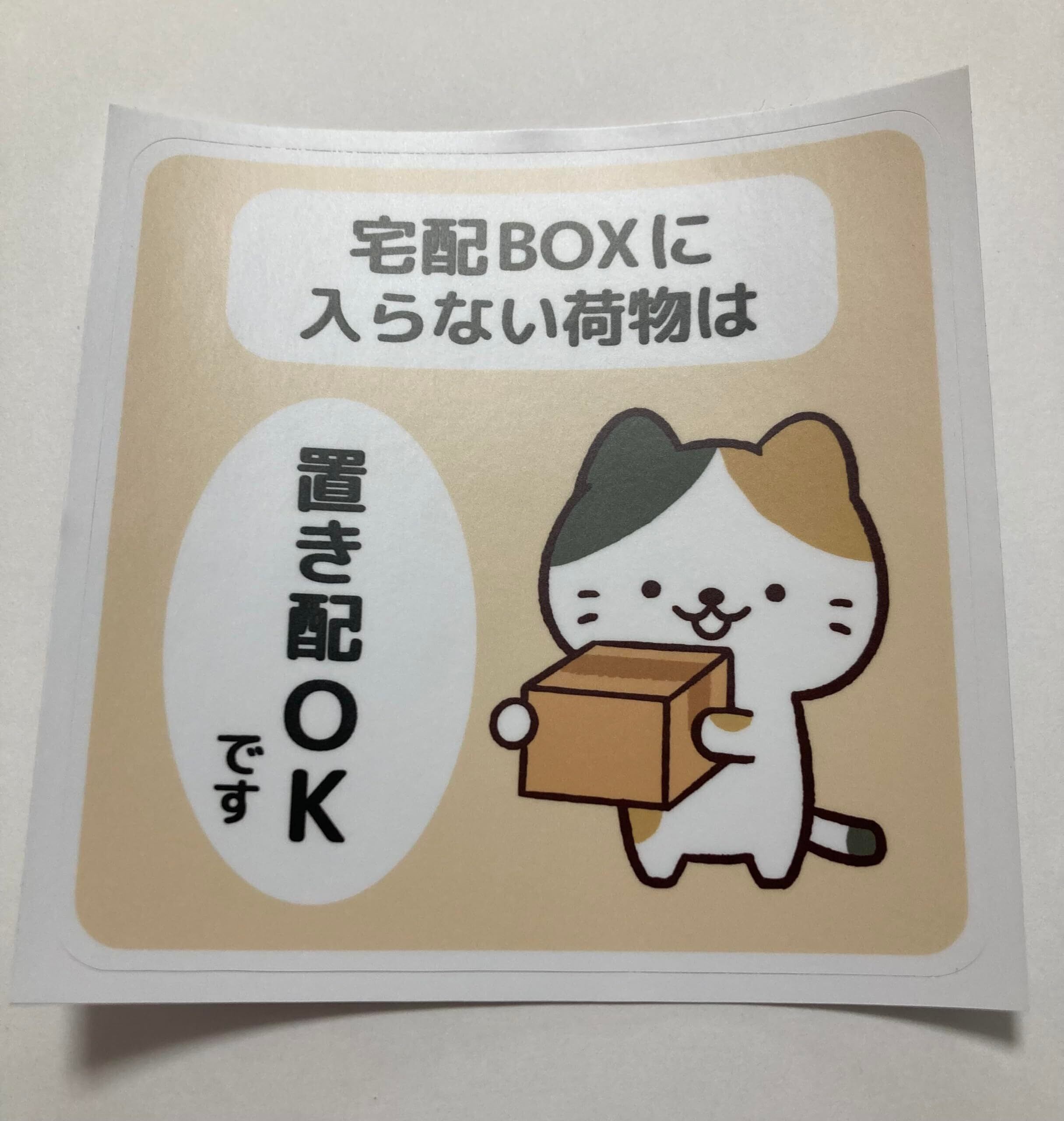 「宅配BOXに入らない荷物は置き配OK」のステッカーです。