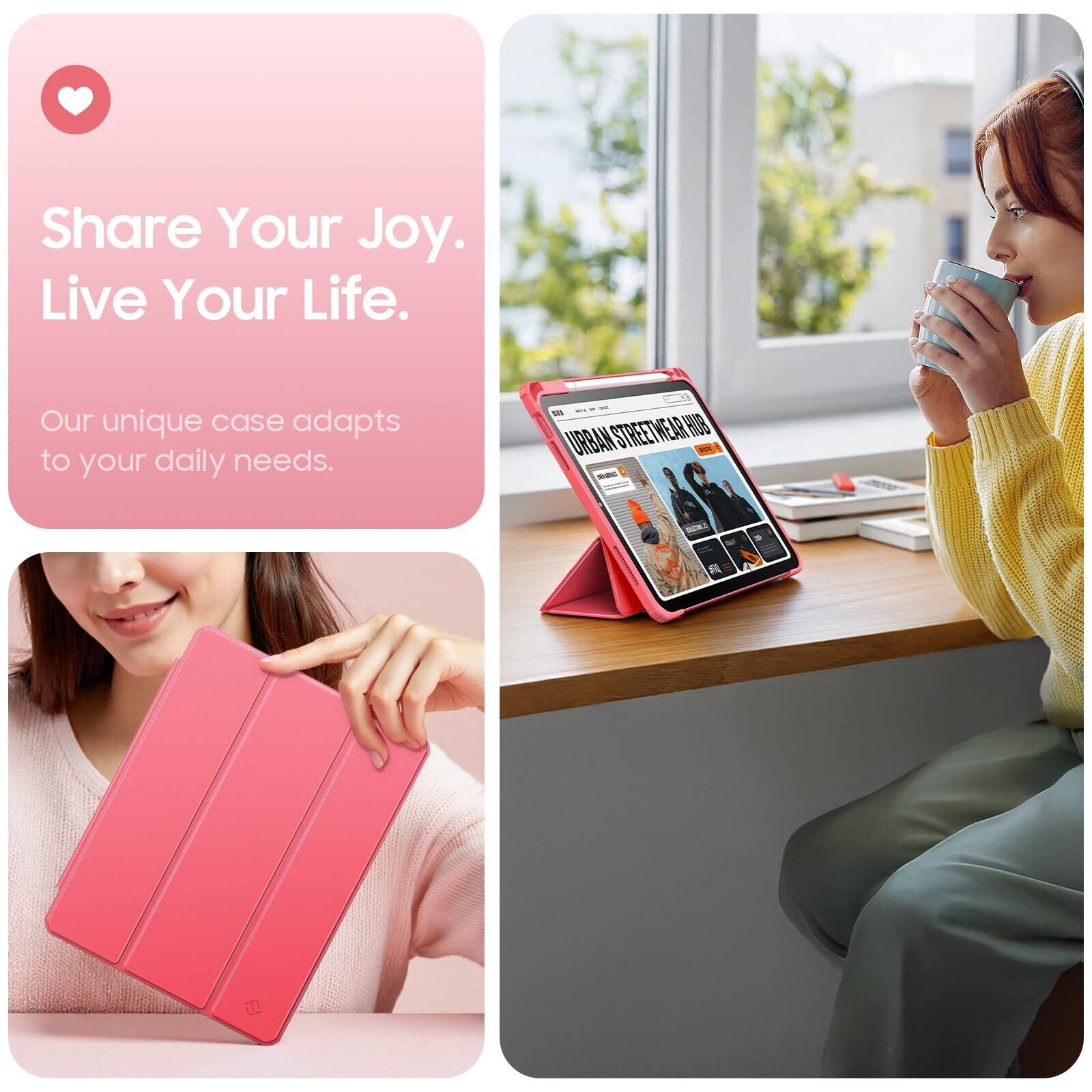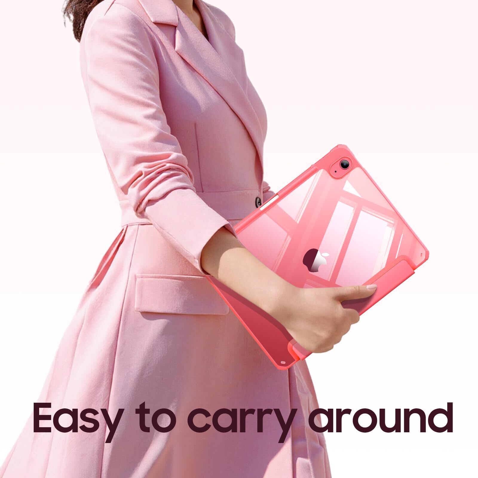 Fintie iPad 第11世代 (A16、2025) / 第10世代 (2022) ケース 11/10.9インチ 透明バックカバー Apple Pencil 収納可能 三つ折スタンド スリープ機能 軽量 薄型 傷つけ防止 PU合成レザー TPU(ピンク)