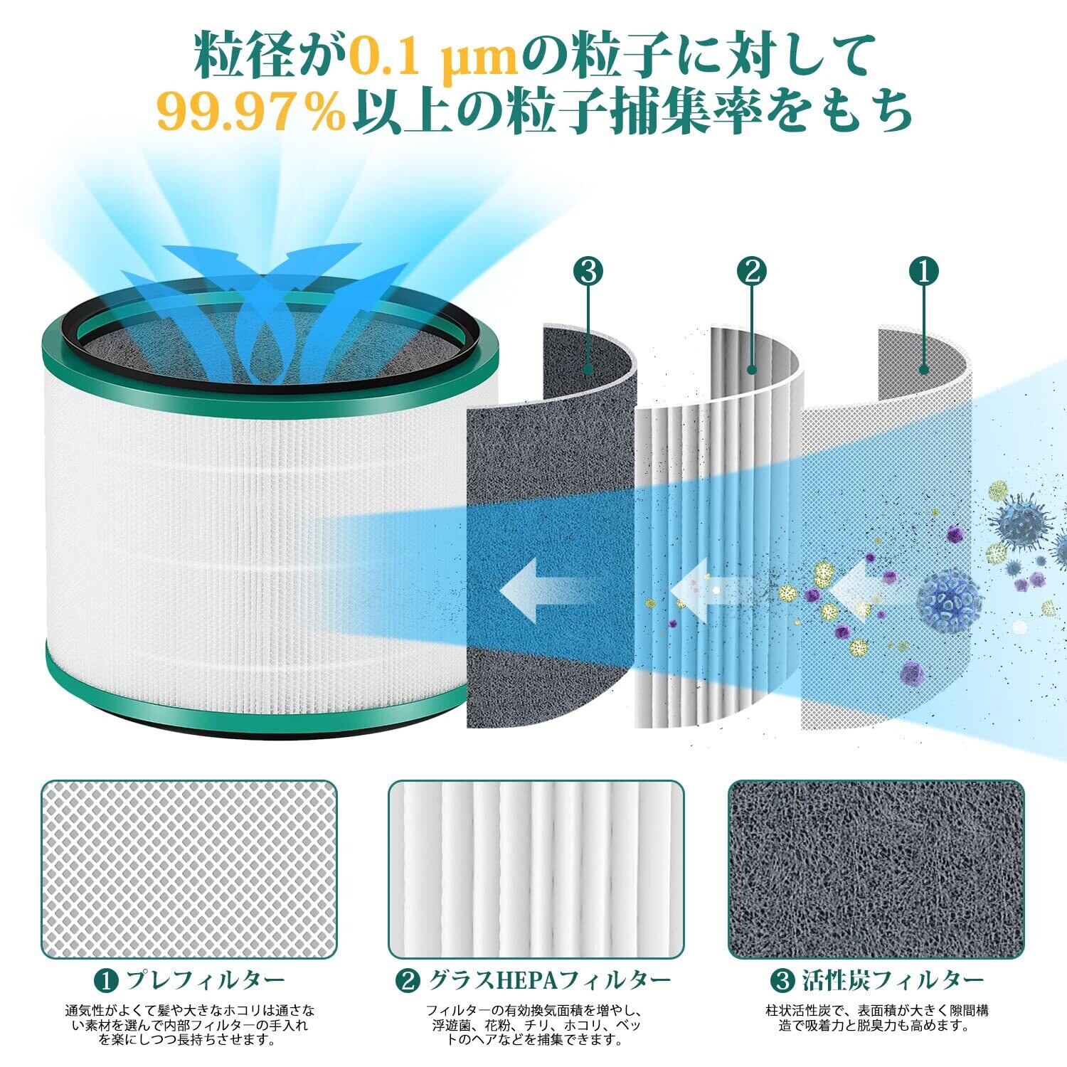 【適用機種】ダイソン Pure シリーズ空気清浄機能付ファン HP03・HP02・HP01・HP00・DP03・DP01純正フィルターと同じ使用できます。