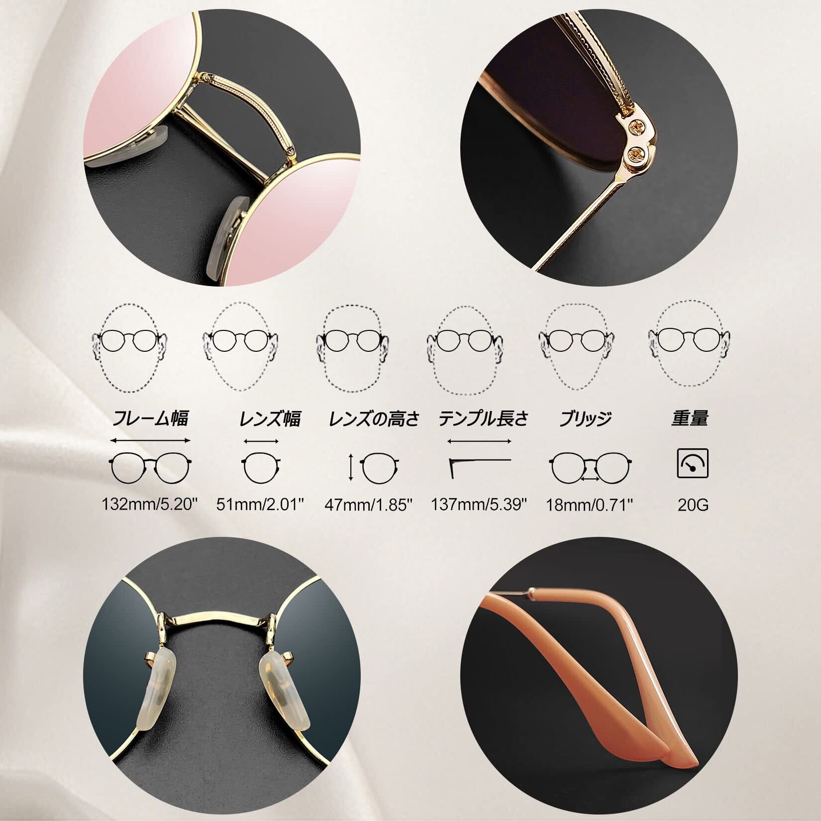 【スタイリッシュなデザイン】丸いレンズフレームが、顔を柔らかく見せてくれるラウンド型サングラスです。スタイリッシュでクラシックなデザインが魅力で、さり気なくレトロな雰囲気を演出してくれます。 細身のメタルフレームとローカーブレンズを組み合わせ、高級感に溢れています。レンズは耐紫外線性に優れたカラーレンズを採用し、見た目の美しさと機能性の高さを兼ね備えています