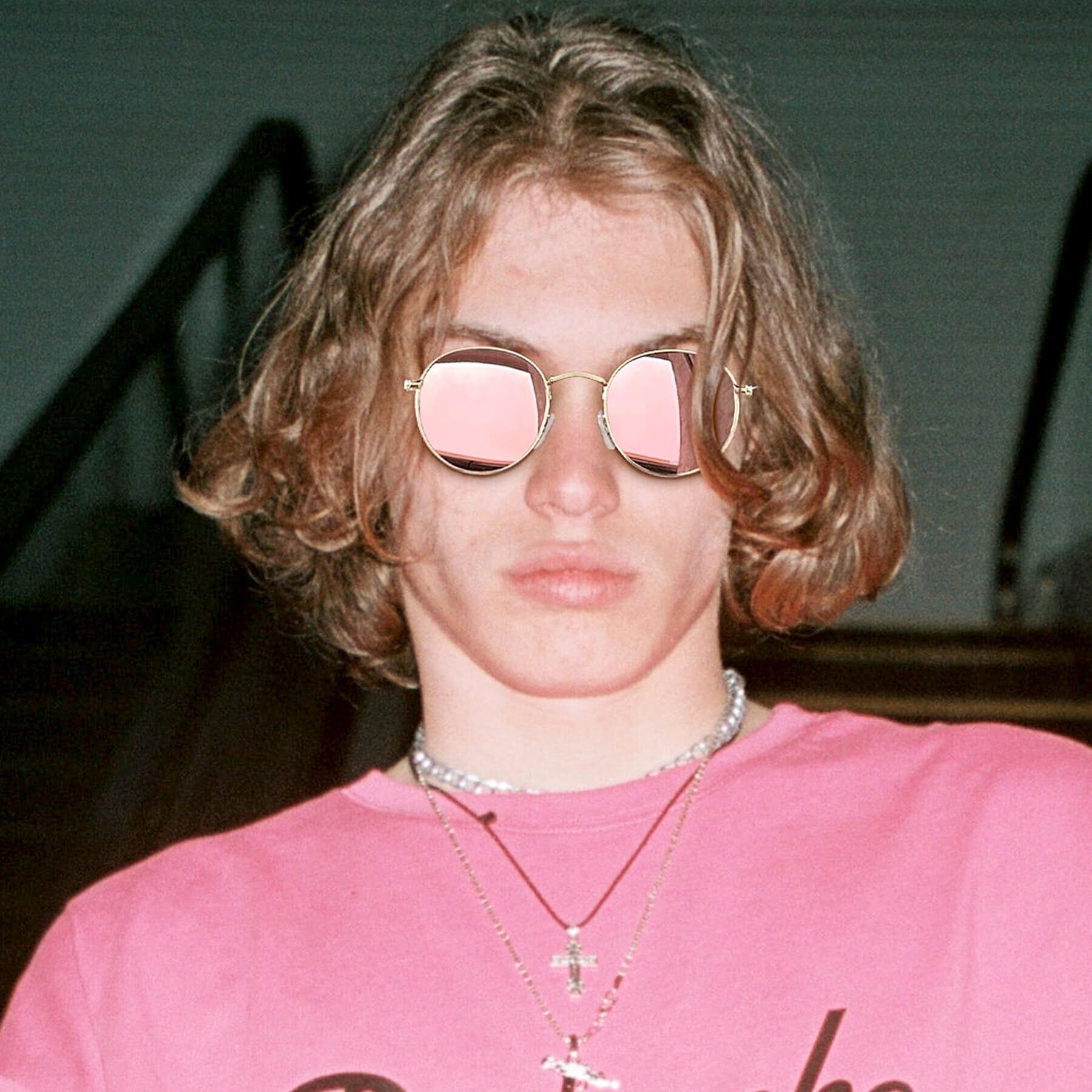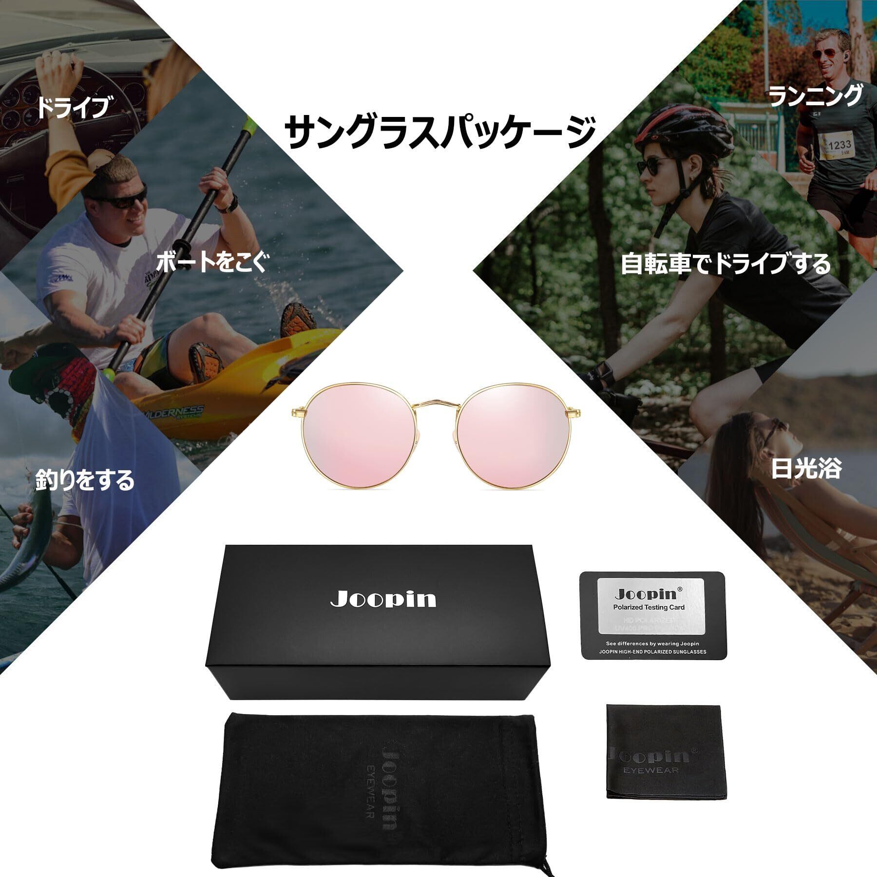 [Joopin] サングラス メンズ レディース 偏光 丸形 ラウンド 紫外線カット レトロ 軽量 旅行 お出かけ 釣り 運転 登山 プレゼント(ピンク)