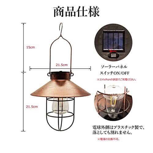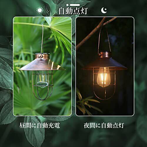 ソーラー ランタン 屋外 おしゃれ ソーラーライト アンティーク ガーデンライト レトロ 防水 LEDランタン 省エネ 自動点灯 間接照明 雰囲気作り 吊り下げ 玄関先 車道 歩道 庭 ガーデン 照明 暖色 1個 (ブロンズ)