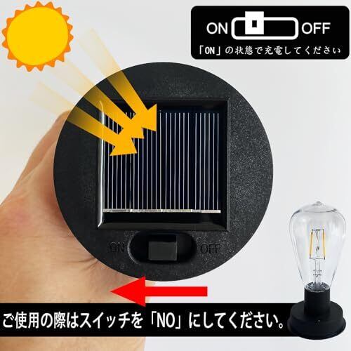 【正しくお使いください】 OFFは全閉です。ご使用の際はスイッチを「NO」の位置にしてご使用ください。暗くなると自動で点灯し、電池がなくなると消灯します。充電する際も「ON」の状態で充電してください。スイッチを入れて「NO」の位置にしてください。暗い場所で点灯しない場合は、「ON」の状態にして太陽光に当てて充電してください。バッテリーが完全に充電された後は、通常どおり使用できます。