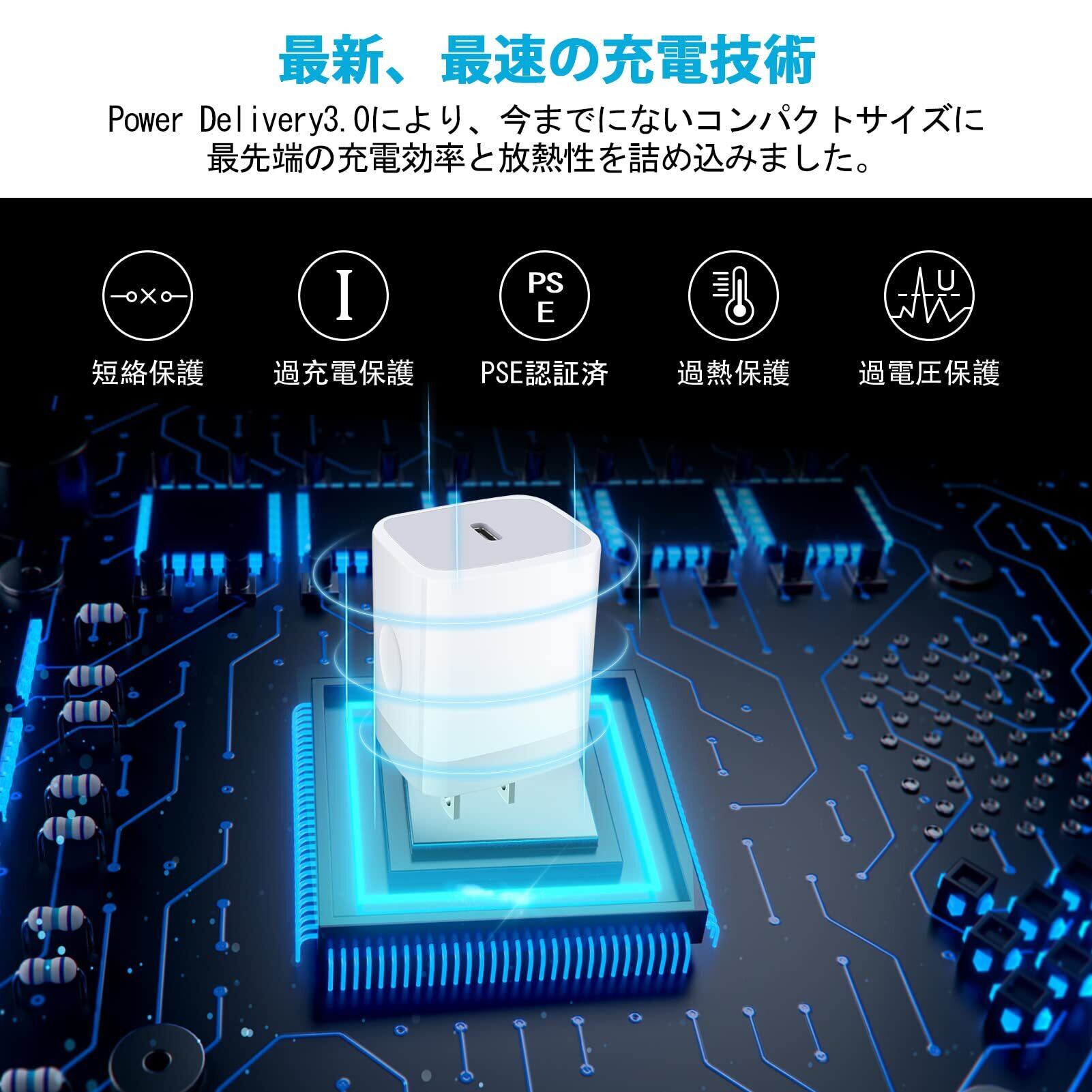 PSE認証取得なTYPE-Cアダプター:PSEなど電気安全に関する認証を取得し、当社独自の多重保護システムにより過充電、過放電、過熱、短絡を避けて充電器自体とデバイスを保護でき、充電をもっと安全になります。 最大18W- 5V/3A, 9V/2.22A, 12V/1.67Aの電圧電流に対応し、自動判別機能を通して、接続されたデバイスに最適な電流を出力します。