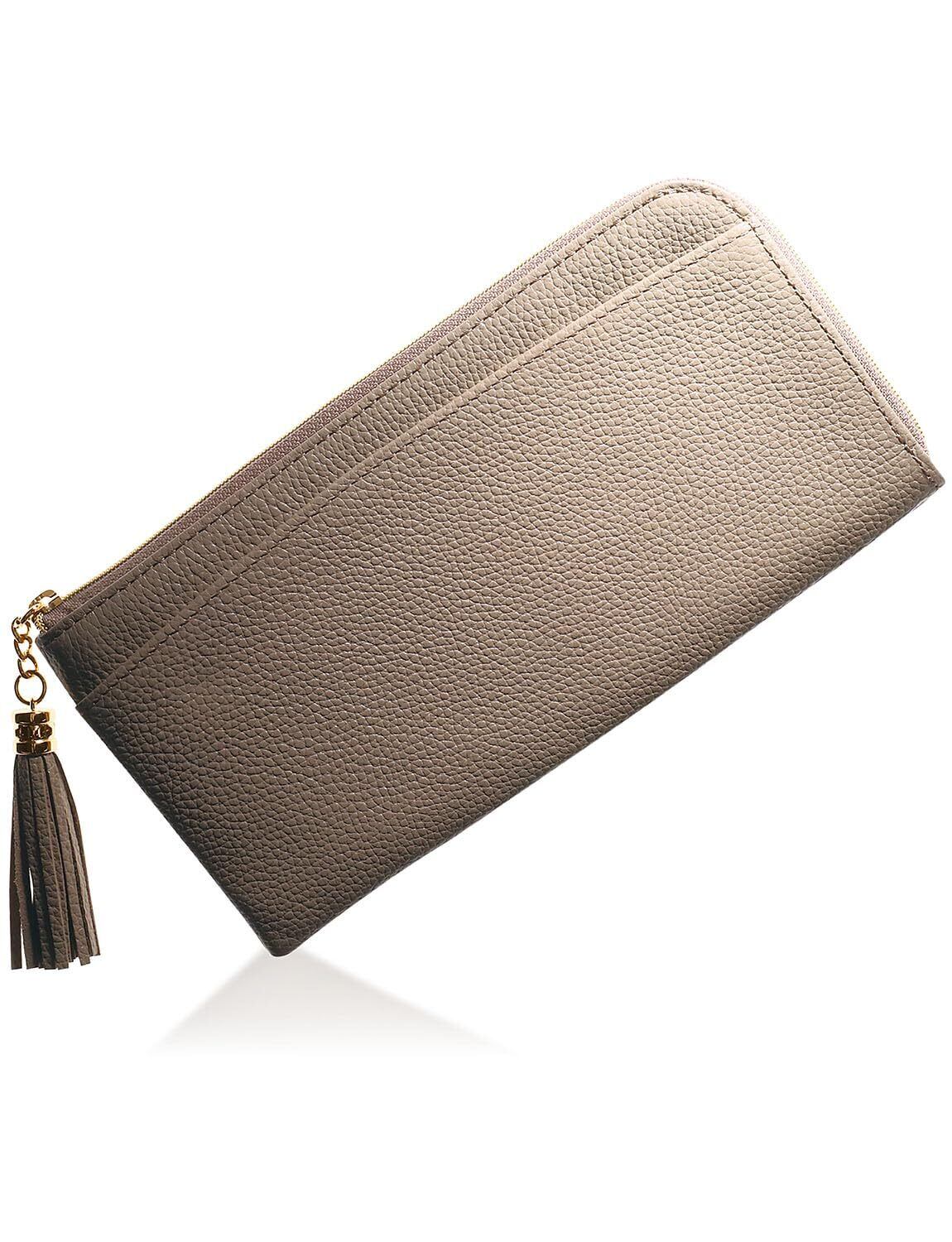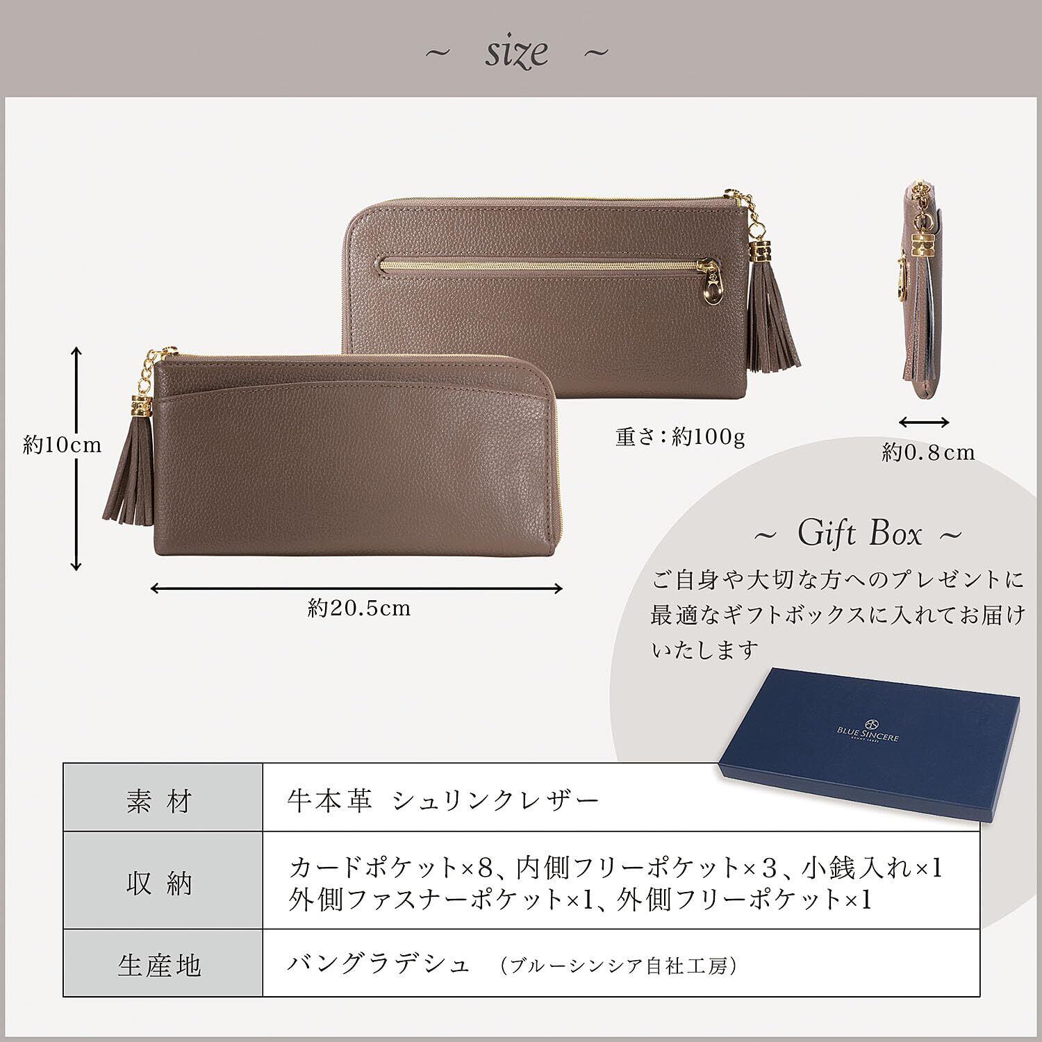 [BLUE SINCERE] ブルーシンシア 本革 長財布 レディース RFID スキミング防止 L字ファスナー タッセル付き 財布 お札入れ 小銭入れ付き / SW3 (グレージュ)