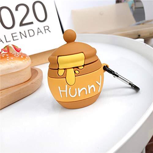 Little merry AirPods カバー Apple AirPod用 ぷーさんのはちみつ はちみつポット 萌え萌え シリコン おしゃれ ストラップ付き 保護ケース 防塵 耐衝撃 airpods 第一世代 第二世代 ケース キズ防止 滑り止め エアーポッズ ケース (Airpods 1世代, 2世代)